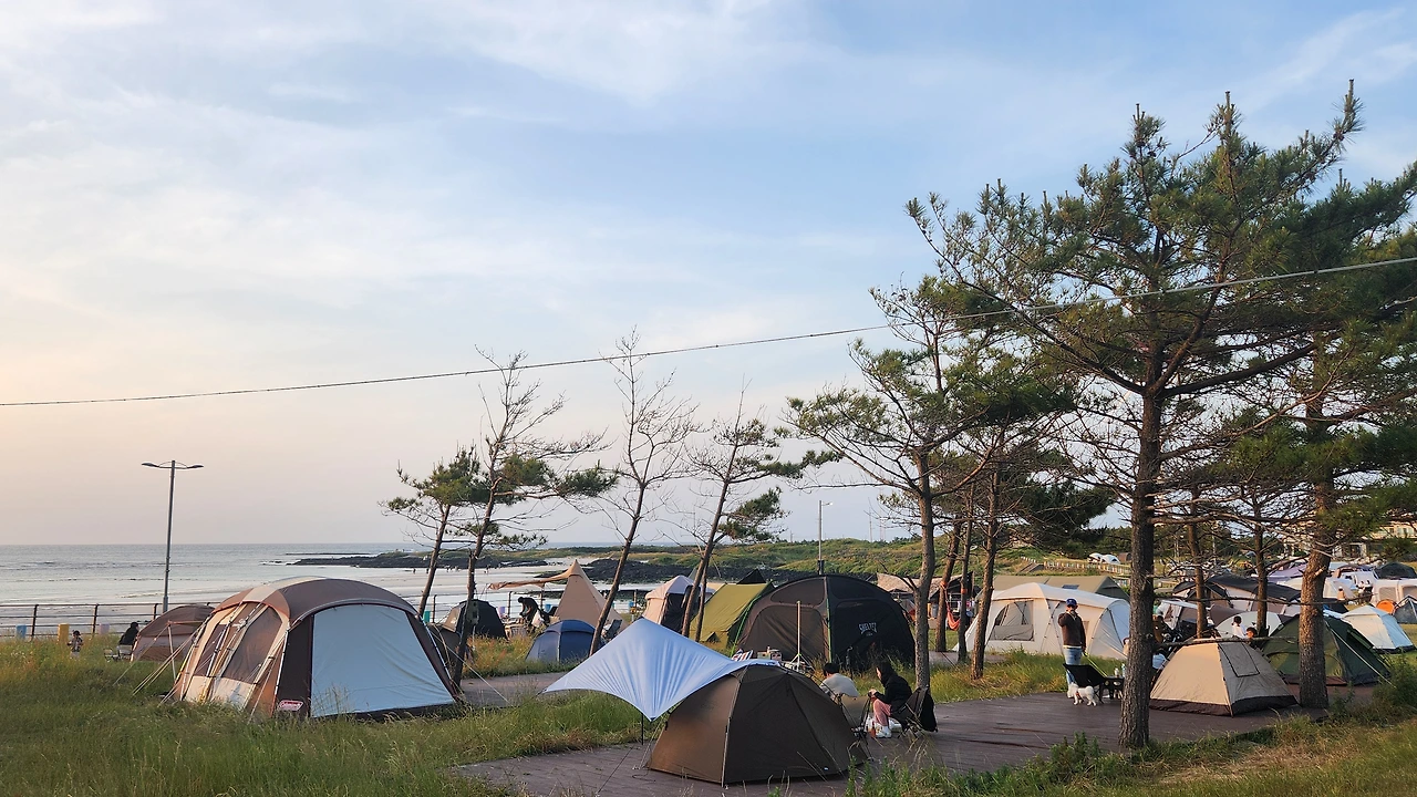 모래사장만 있는 대부분의 해변과 달리 해수욕장에 바로 인접해 살짝 높은 위치에 잔디밭 지대가 있다. 위에서 바다뷰를 내려다보면서 바닷물에 텐트가 오염될 우려도 없어 현지인들의 인기 캠핑지다.