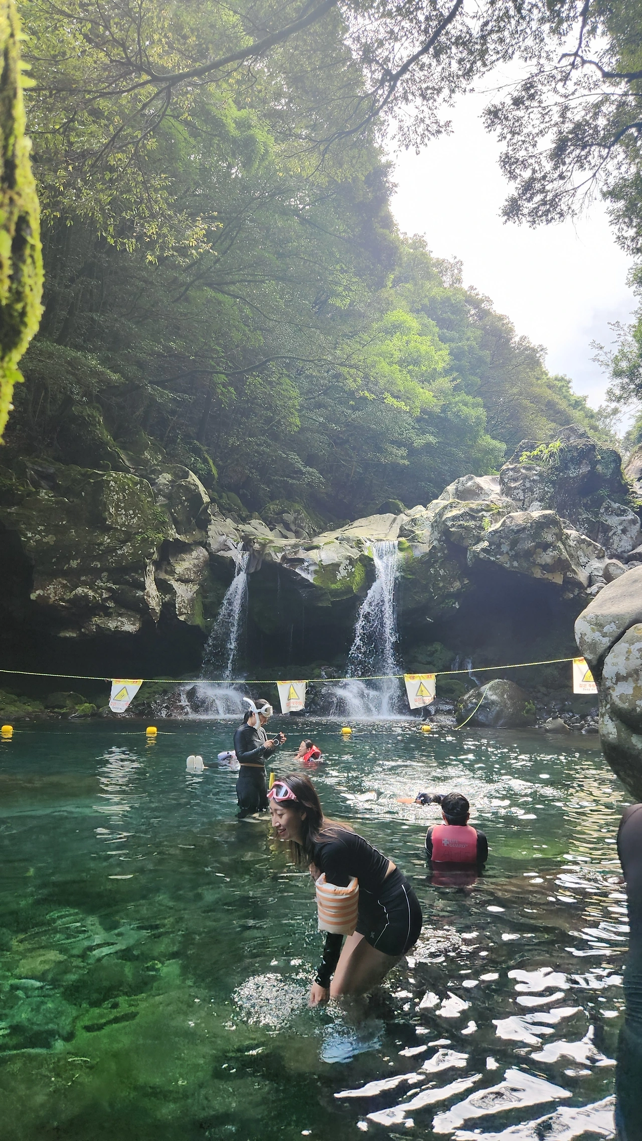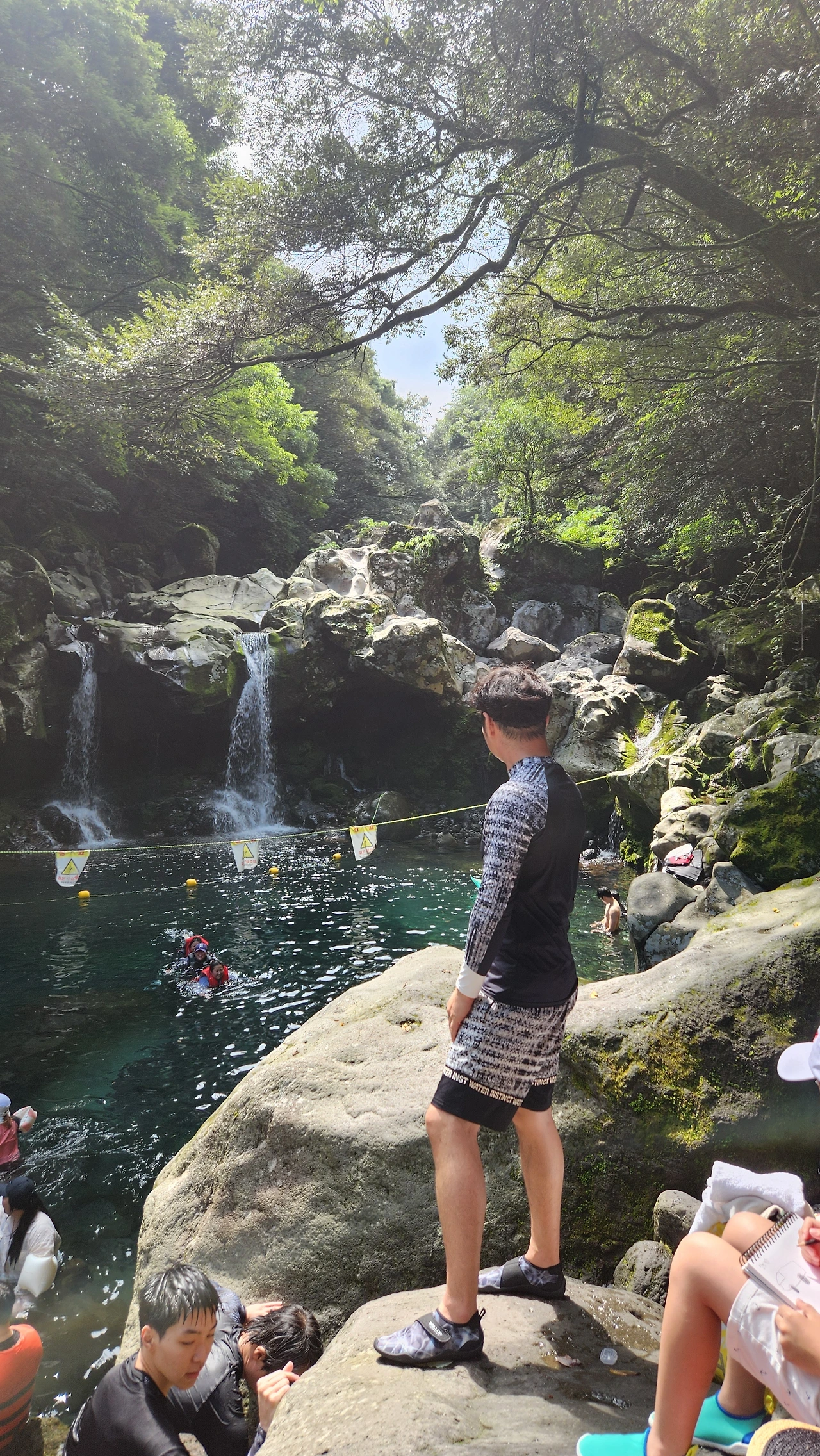 험준한 바위 골짜기 사이 원앙폭포 하류에 고인 계곡 돈내코. 깊은 골짜기 사이에 고인 작은 옥빛 못은 숨겨진 보석처럼 어찌나 희귀하고 아름다운 색깔을 품고 있는지. 넓지 않은 계곡에 왜 사람들이 득실거리는지 그중 한 명으로서 이해가 간다. 허나 아름다운 외모와 달리 쉽게 외부인의 입장을 허락하지 않는 살벌한 성격을 가지고 있었다. 암석이 험준하고 이끼가 끼어있어 사람들은 한 발 한 발 내딛기는커녕 균형 잡고 서있기도 어려워 비틀댔다. 뿐만 아니라 아름다움에 홀려 물속에 발을 들였다가는 세상 느껴보지 못한 냉기를 뼛속 깊이 느낄 수 있다. 정말 웬만하지 않은 차가움은 한참을 걸려 하반신만 겨우 넣는데도 발끝부터 머리까지 띵하게 아려왔다.