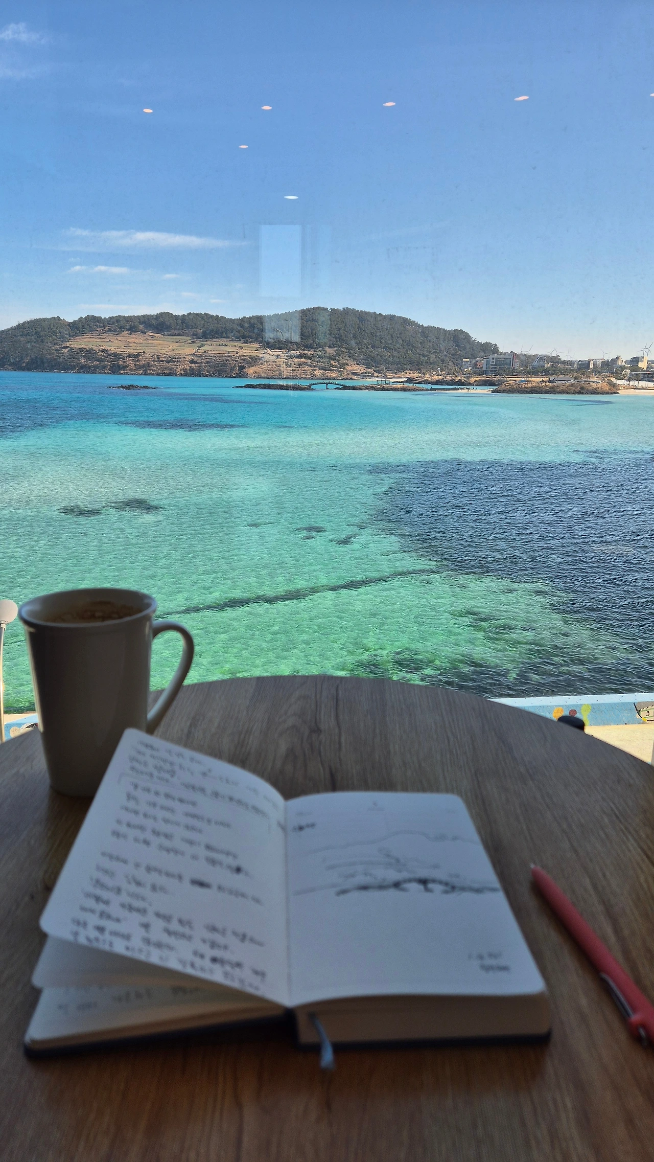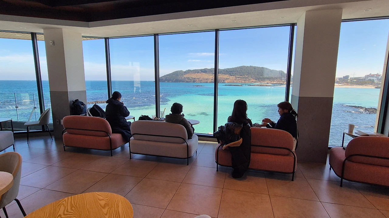 통창 가득 채우는 에메랄드빛 바다가 아무리 보아도 믿기지 않는다.
