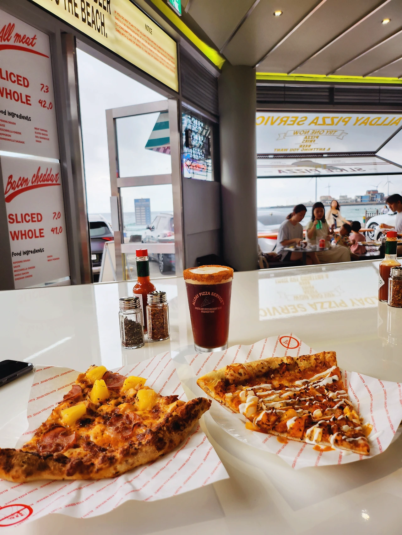 그렇게 배도 안고픈데 외관이 힙하다며 피자집까지 기어코 들어가 먹고서야 아이들 하원시간 임박에 첫 올레길 순행은 급 종료된다.