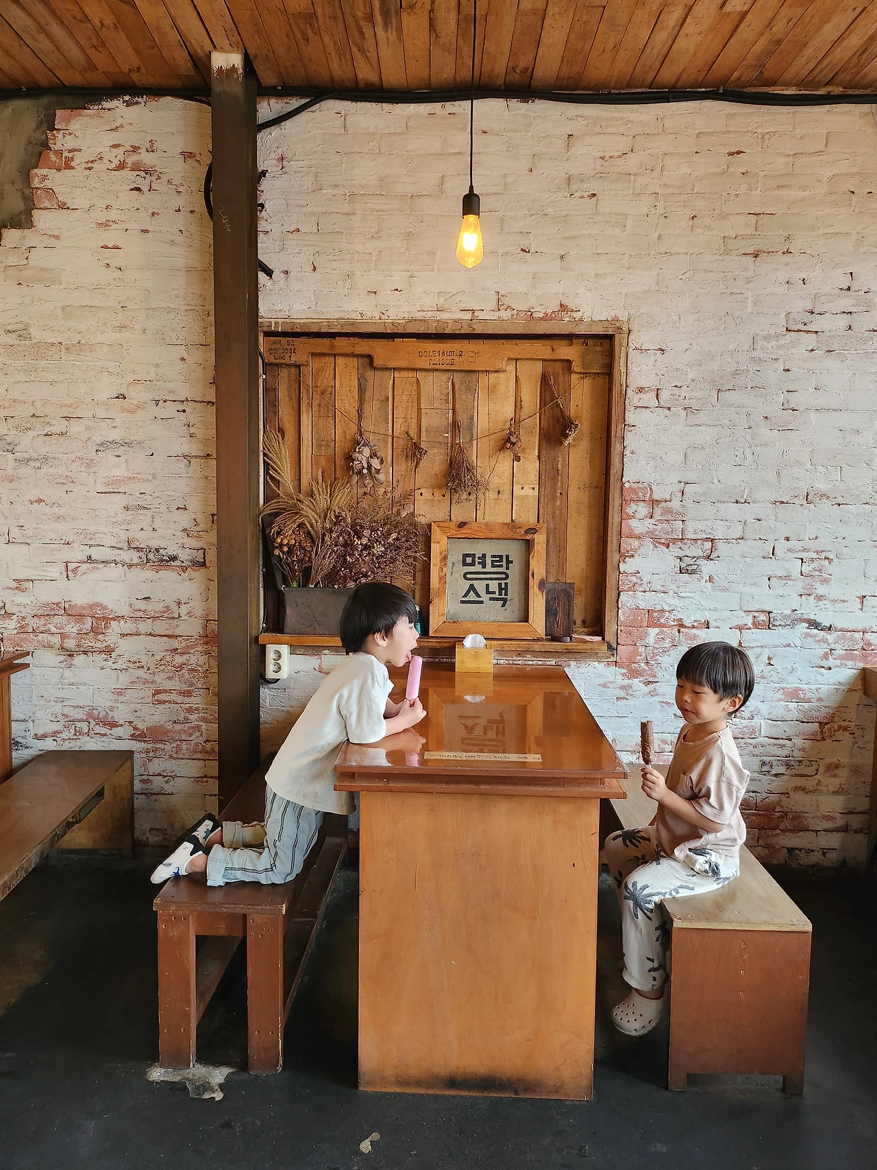 식당에서 판매하는 아이스크림을 빨며 여한 없는 물놀이의 여운을 식히고 있다.