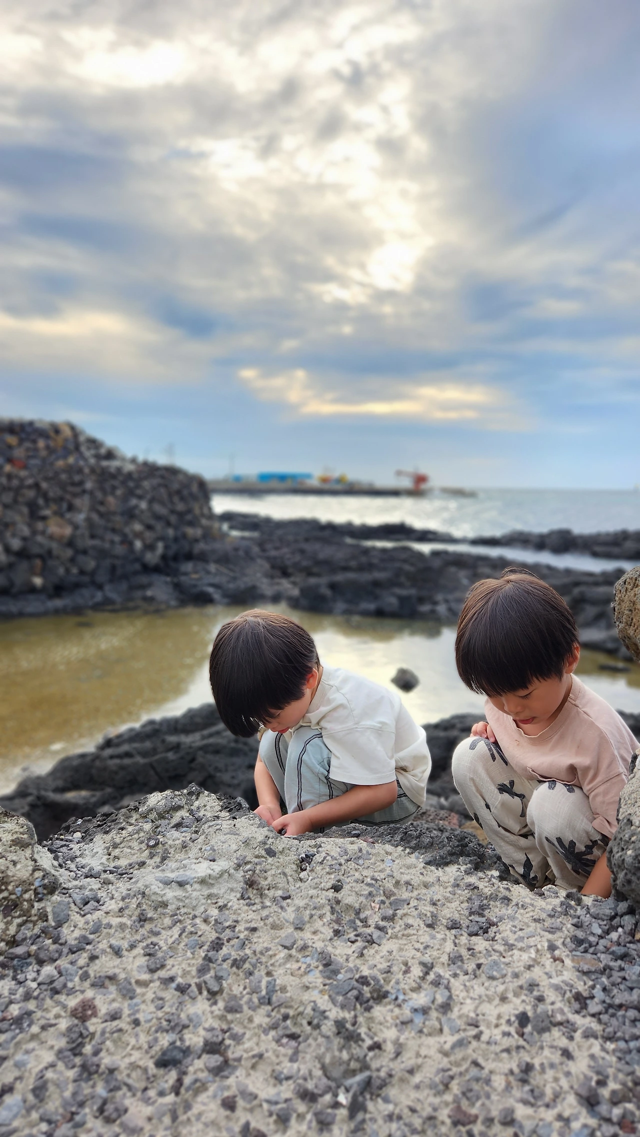 협재해수욕장을 지나다가 우연히 본 두 남자 꼬마아이들이 해변에 앉아 한가로이 모래놀이를 하는 모습이 그렇게 아름다워 보였다고 한다.