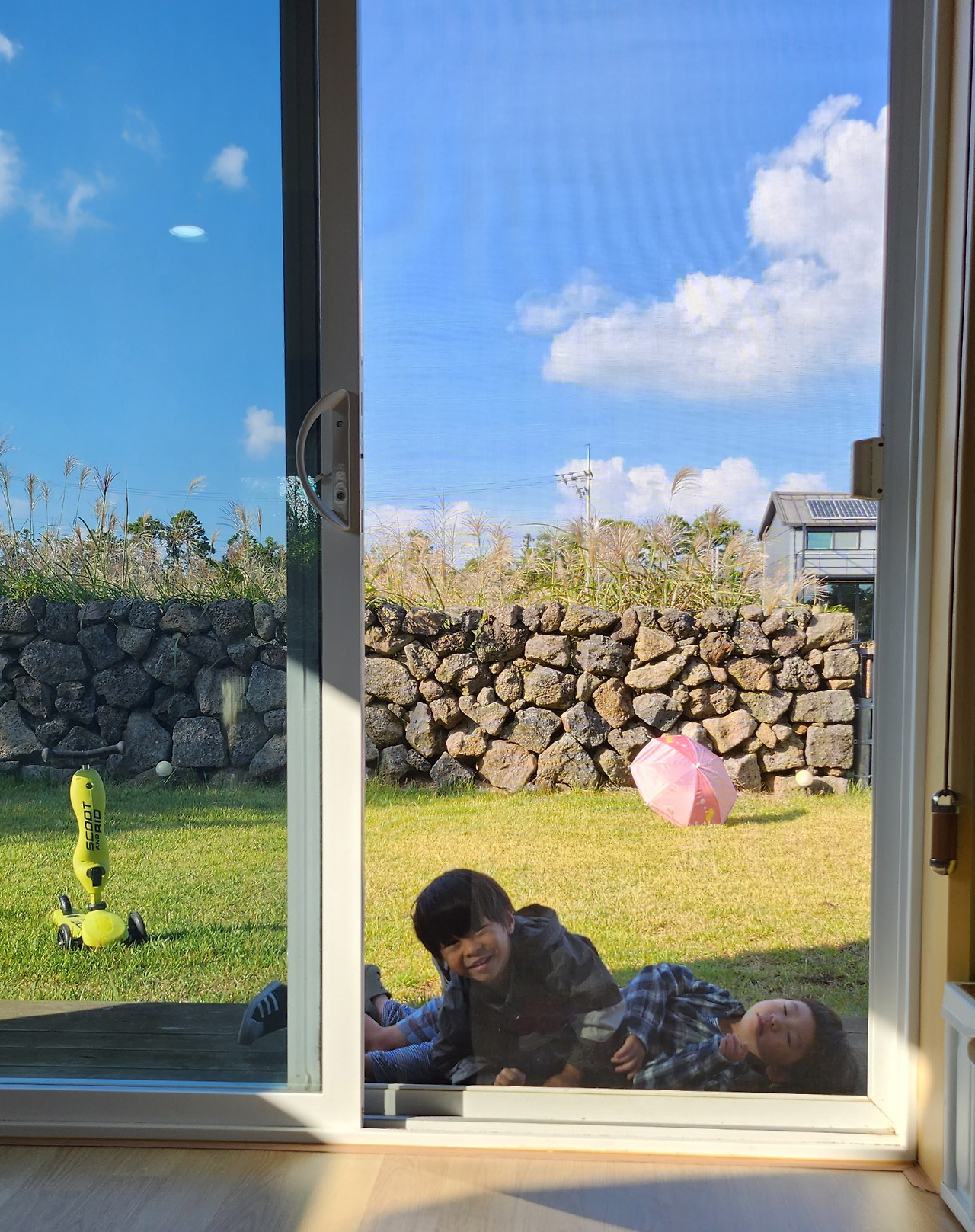 제주에 와 한달무렵이 지나자 아이들 머리가 제법 길어 도무지 이발을 미룰 수 없게 되었다.