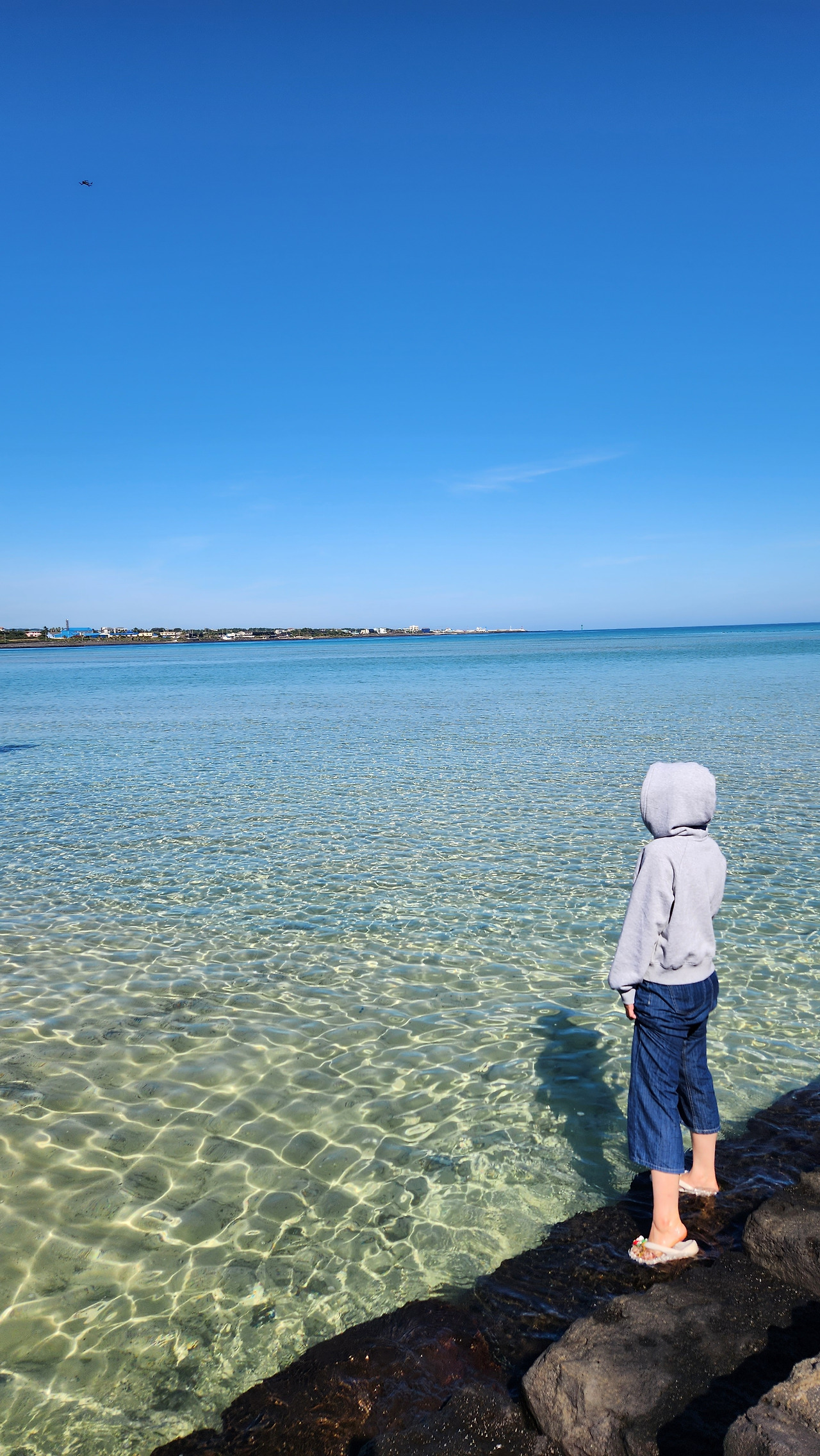 자연은 같은 곳이어도 매일 매시간 매계절 다른 모습을 보여준다. 오늘같이 구름이 없는 맑은 하늘. 만조의 표선은 표선 바다가 보여줄 수 있는 모습 중 가장 아름다운 모습이다.