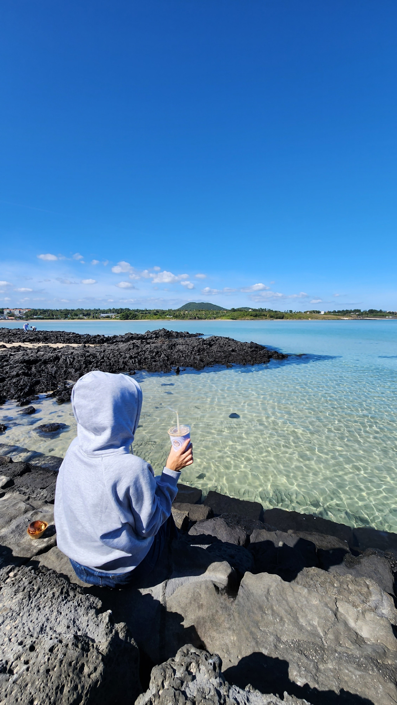 잠깐 식후 산책으로 나왔다 한참을 바다에 넋을 잃은 우리는 제주에서 가장 사랑하는 곳은 '표선'이라고 다시 한번 정의 내린다.