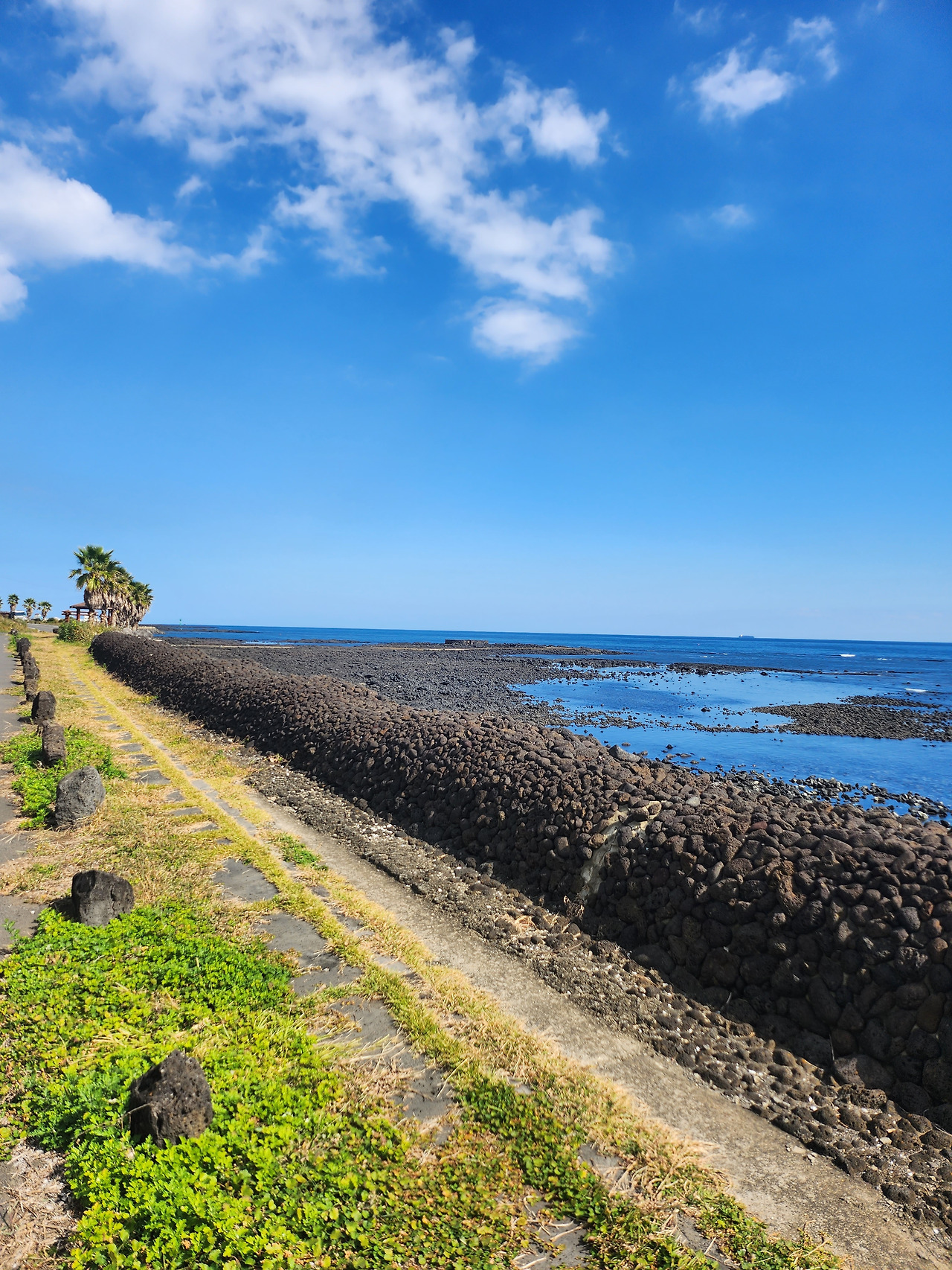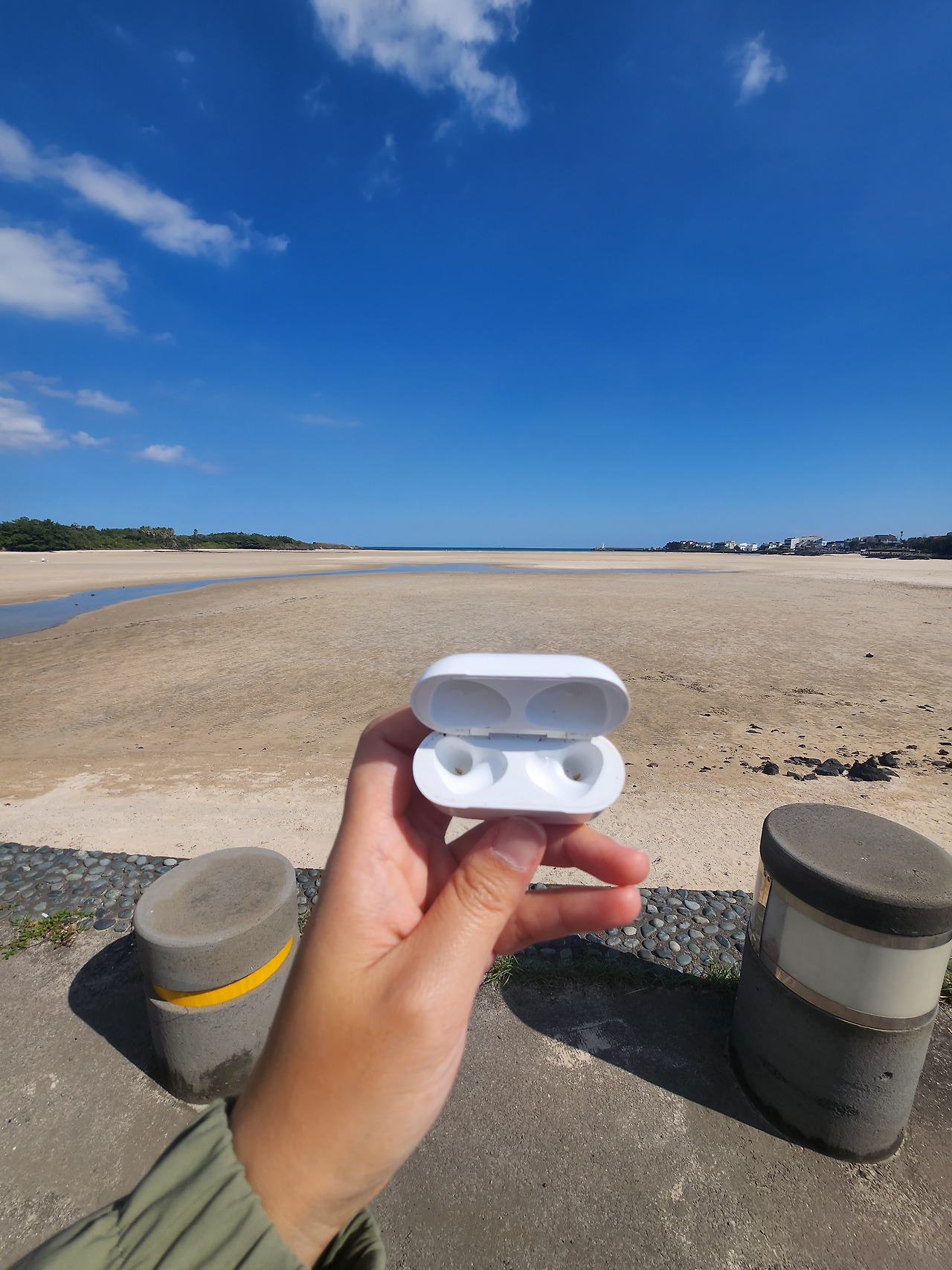 바다, 돌담 그리고 풀들. / 이 와중에 에어팟 케이스만 가져온 대다난 나.