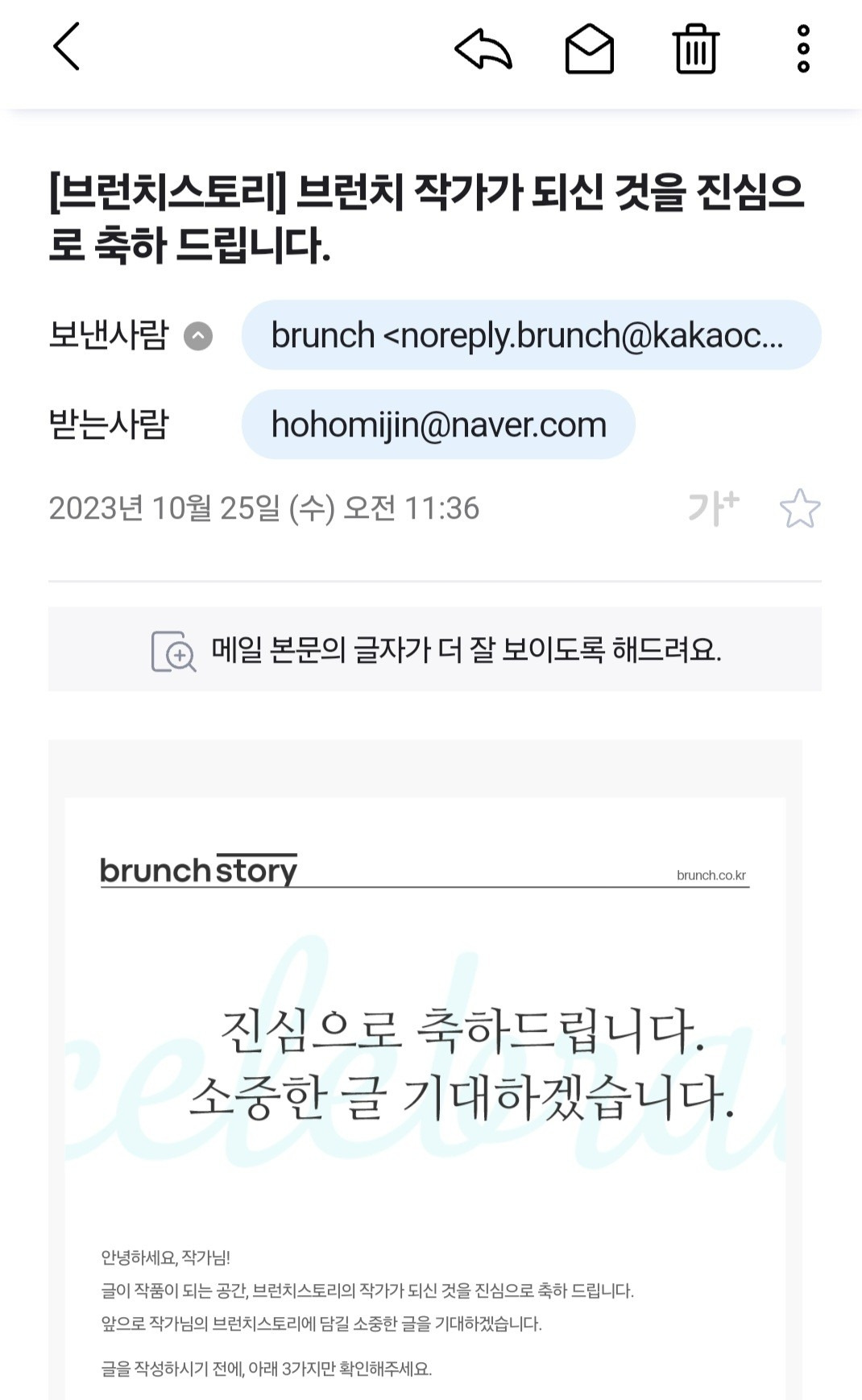 뾰롱-! 알림이 뜬다.