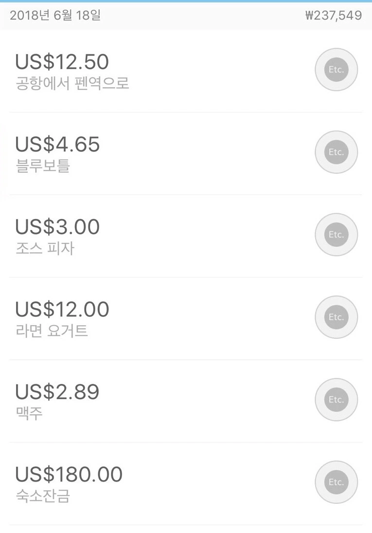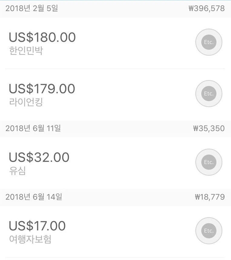 여행전 지출(여행 전 라이언킹 뮤지컬을 예매하고 왔다.) 과 오늘의 지출