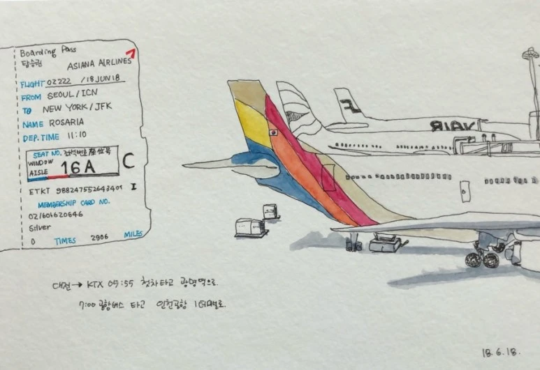 이번에 처음으로 제대로 국적기를 이용한다. 아시아나 항공이다. 국적기는 아무래도 비싸서 매번 다른 나라 항공기를 이용했었는데 이번에 보너스 항공권으로 구입하는 바람에 아시아나를 타게 된다. 뉴욕은 14시간 비행이니 더 좋았다. 영화 한 편 보고, 자다 깨다를 반복하다가 뉴욕 JFK 공항에 도착했다.