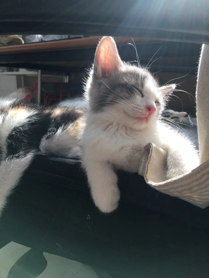 진도에 사시는 분이 길고양이를 구조했는데 임보 중에 밖으로 도망가서 임신을 하고 다시 돌아왔다. 새끼를 낳았고 벌써 몇 마리는 입양이 결정되어 있었다.