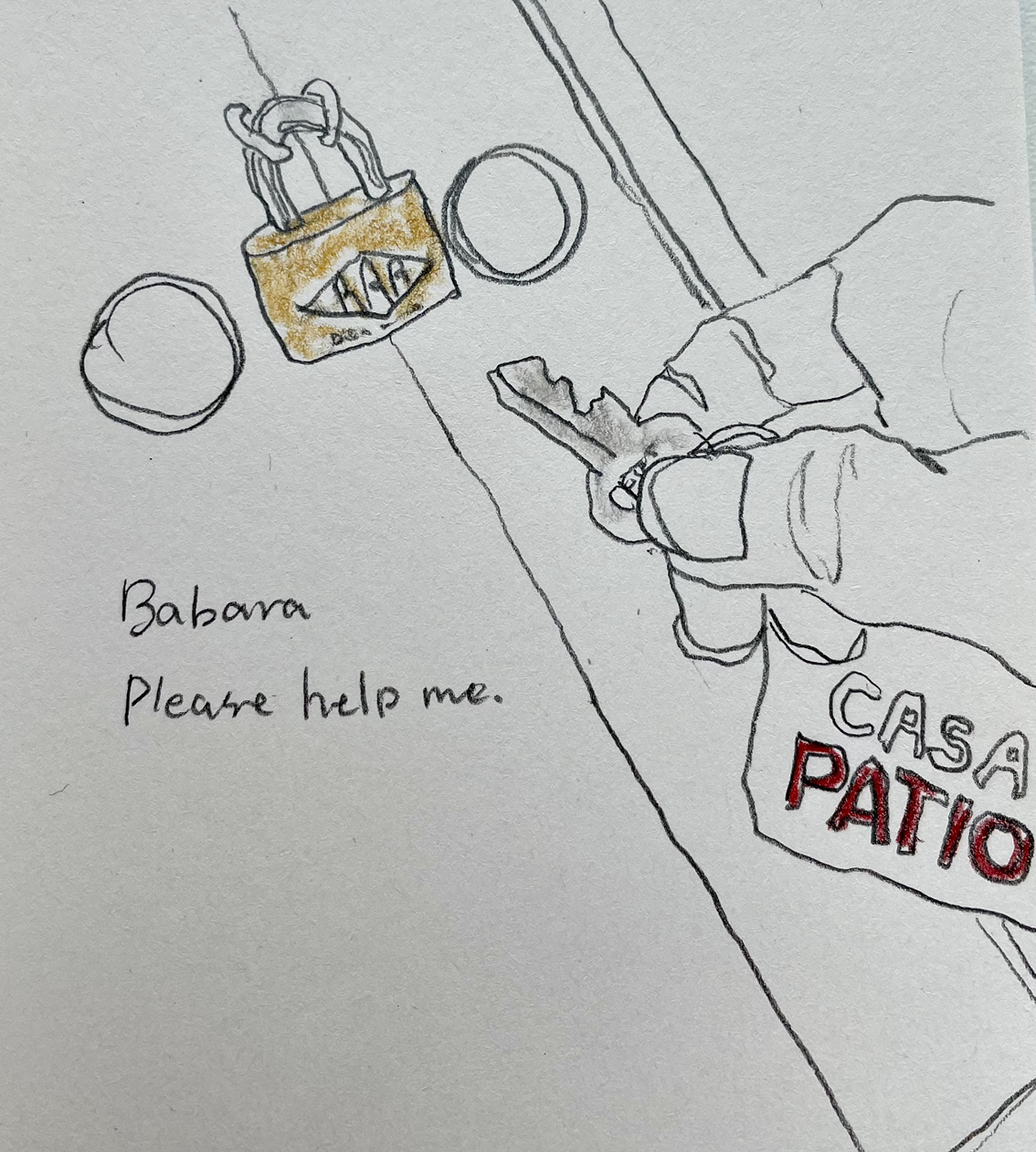 (며칠 지나 우리가 문을 열려고 했던 자물쇠가 열려 있었다. 그곳은 작은 청소용구함이었다. )