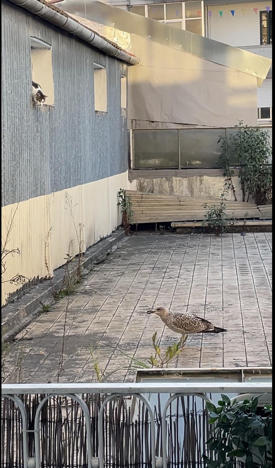 작은 발코니에 고양이와 새가 놀러 오기도 했다.