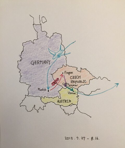 뮌헨 4박 - 프라하 7박 - 체스키크롬로프 1박 - 비엔나 7박.
