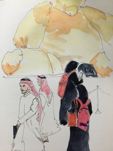 중동임을 느끼게 해주는 사람들. 여성은 까만 차도르때문인지 가방 신발의 색이 화려하다.