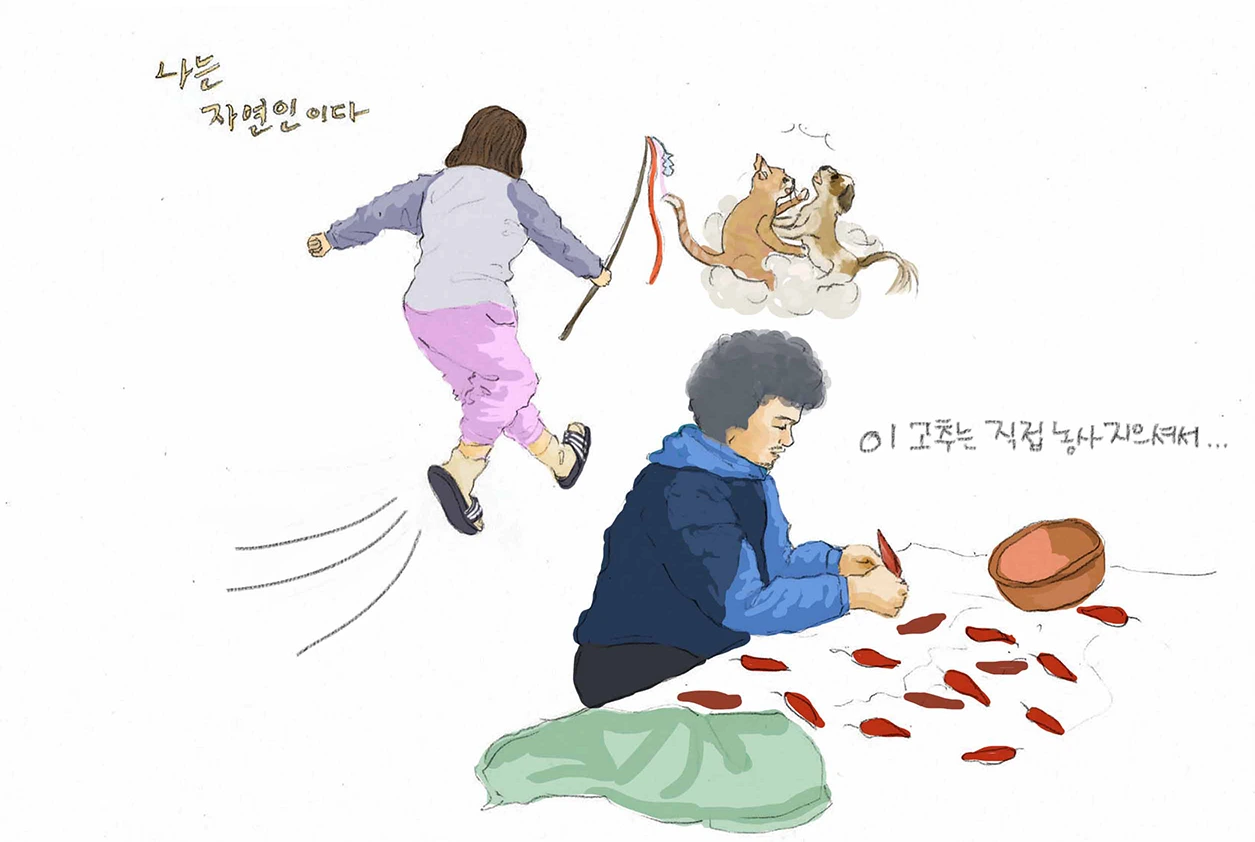 "그럼 다큐지. 코미디냐?! 니 언니 요즘 꼬라지보면 완전 자연인이구만?!"