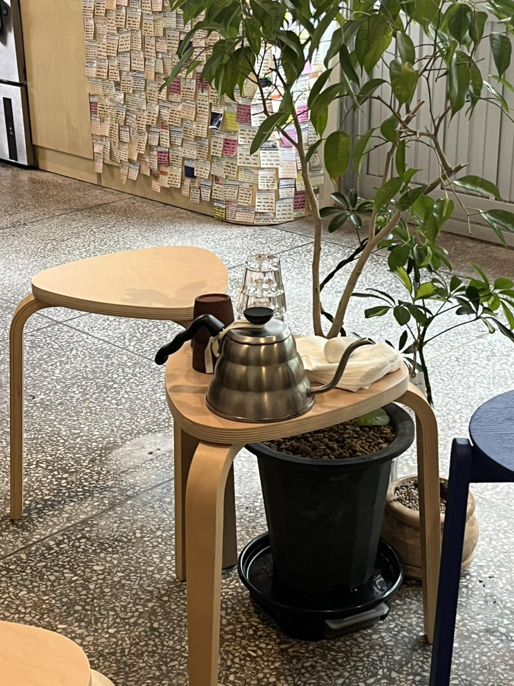 다양한 드립 용품들과 잔들이 있는 걸 봐서는 드립을 주문하면 아마 올 때마다 다른 잔에 마실 수 있지 않을까? 다양한 잔을 준비하는 건 다음 방문을 기대하게 만드니까. 예쁜 잔을 수집하는 것도 그리고 어떤 게 예쁜 잔인지 아는 것도 중요한 거 같다.