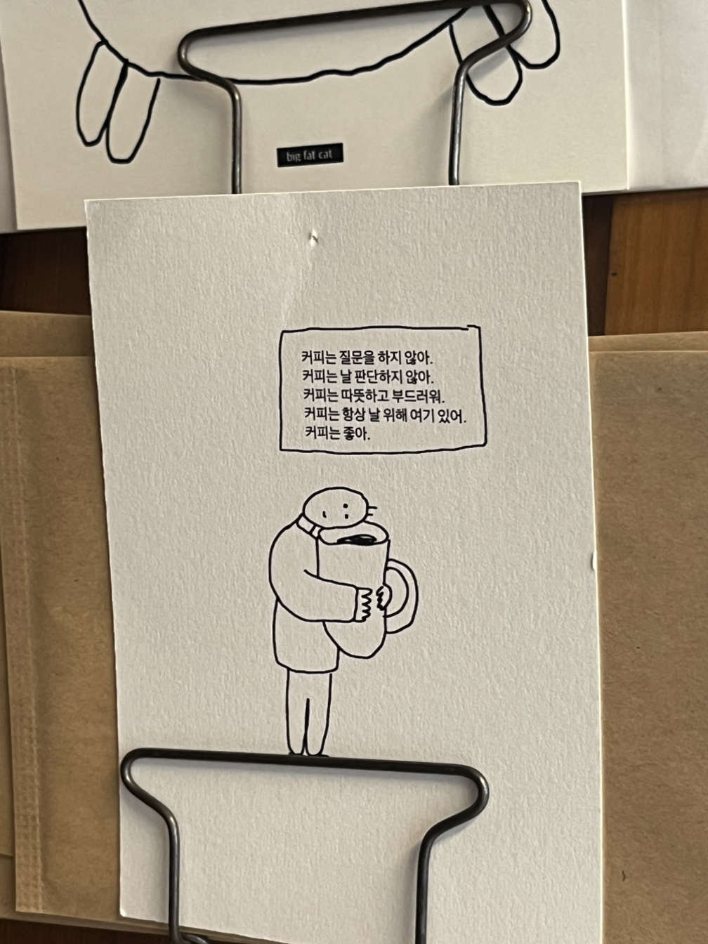 다만 약간의 부담스러움은 있다. 내가 매일 가는 카페라면 이 카페의 가치에 동참할 거 같고 이왕 카페를 가면 여기를 갈 텐데 뭐랄까,, 알 수 없는 부담스러움이 있다. 커피 홀더에도 그 부담스러움이 묻어난다. 어쩌면 이 부담스러움이 누군가에겐 이 카페를 다시 방문하게 만드는 이유가 아닐까 싶기도 하다.