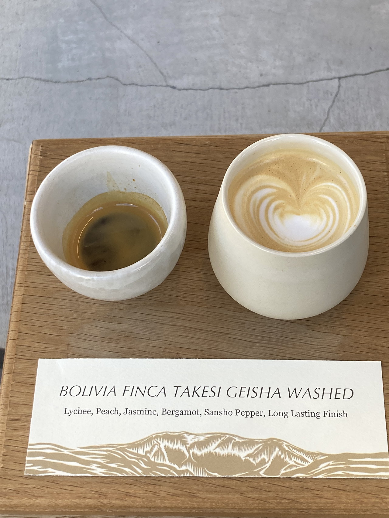음료: 에스프레소&라떼 세트 - Bolivia Finca Takesi Geisha Washed (¥2,500)