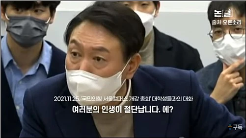 (2021년 11월 25일 ‘국민의힘 서울캠퍼스 개강 총회’ 행사에서 대학생들과 대화 中)