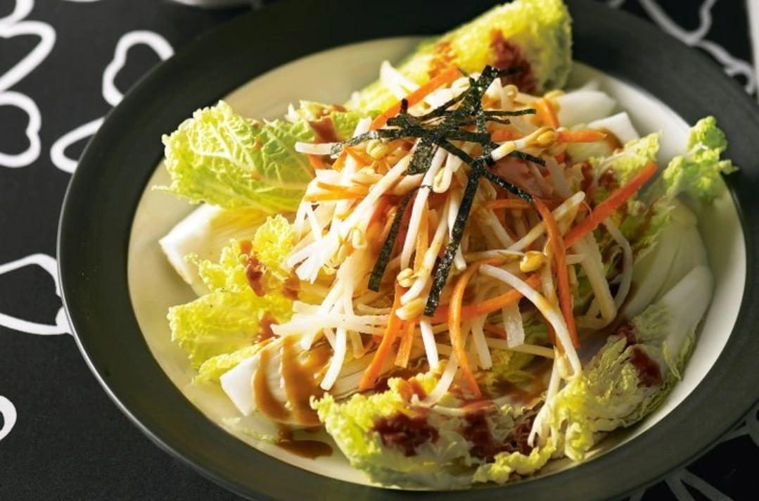 참깨 드레싱을 곁들인 배추 샐러드는 거창하지 않다.