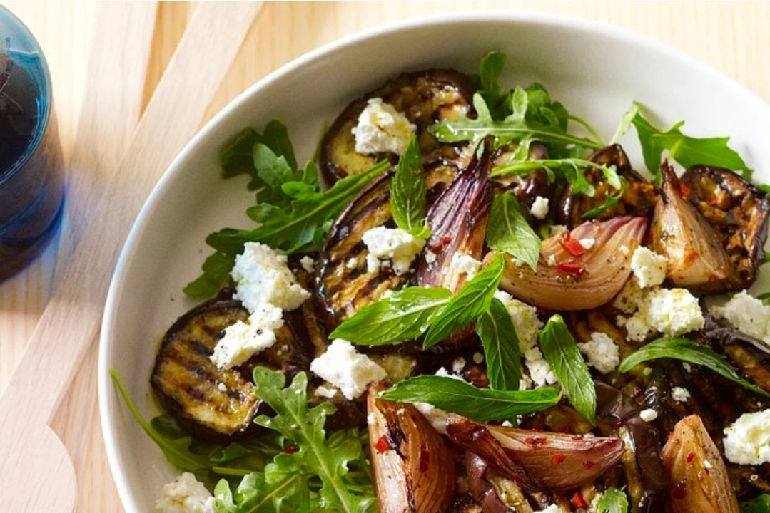 요리초보도 헤드셰프가 되는 세상에서 제일 만들기 쉽고 맛있는 가지, 구운 적양파, 페타 치즈, 민트 샐러드 만들기.