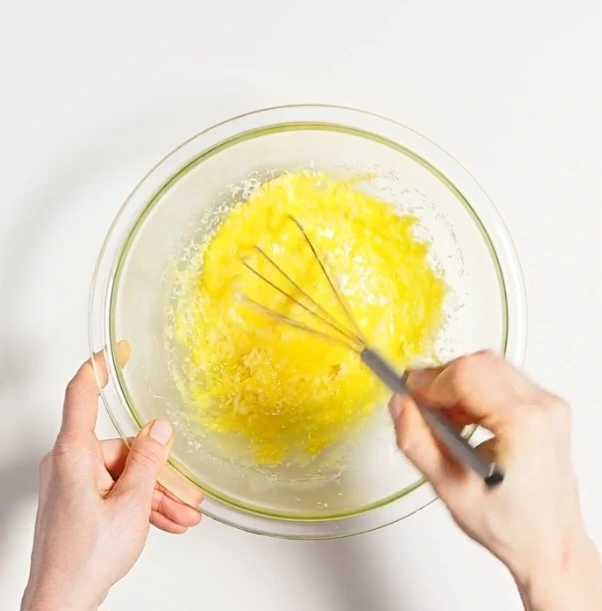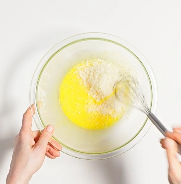 계란 노른자, 파마산 치즈를 큰 그릇에 넣고 소금과 후추로 간을 맞추며 잘 섞습니다.