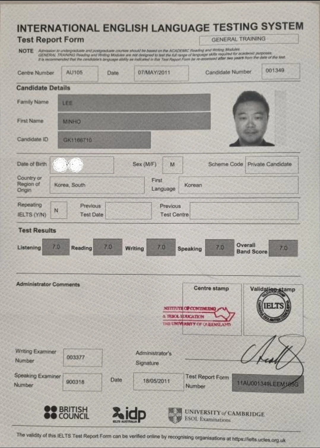 7.0... 7.0 이야! Each band 7.0!!!
