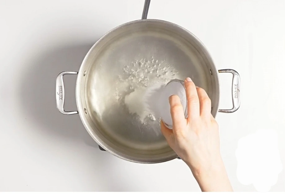소스를 조리하는 동안 다른 냄비에 소금( 약 2큰술)을 넉넉히 넣은 물을 끓이고 파스타 200g을 넣어 약 7~8분간 알덴테로 익힌 후, 체에 밭쳐 물기를 잘 빼 줍니다.