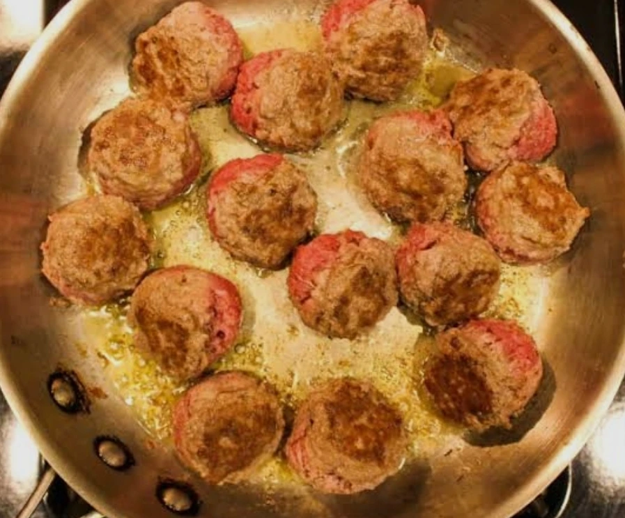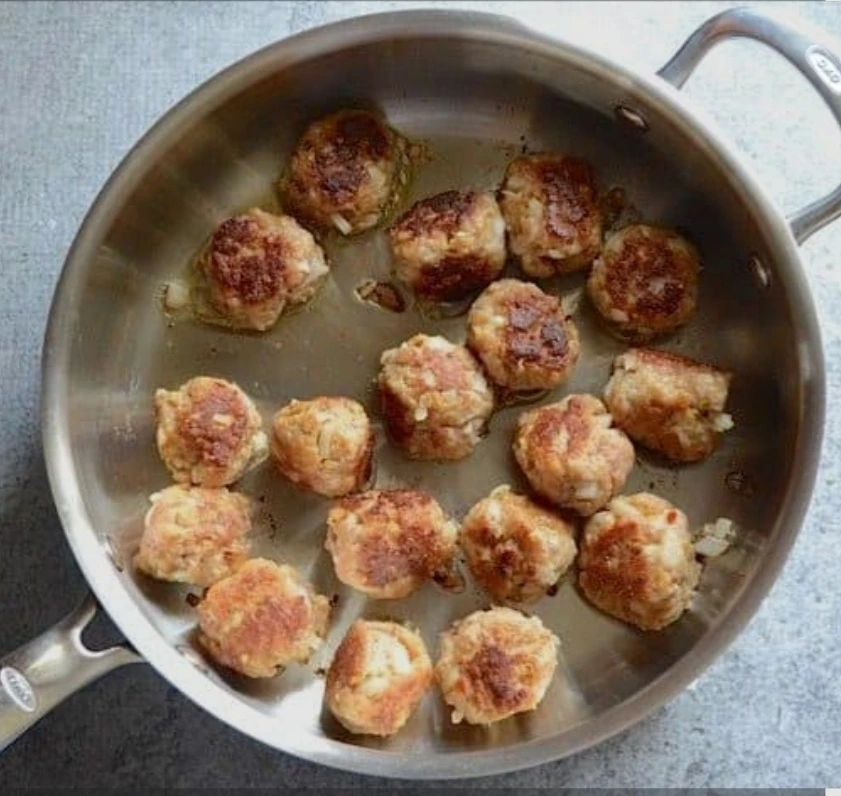 팬에 올리브유를 충분히 두르고 중불에서 미트볼을 노릇하게 구워줍니다. 겉면이 익으면 꺼내둡니다.