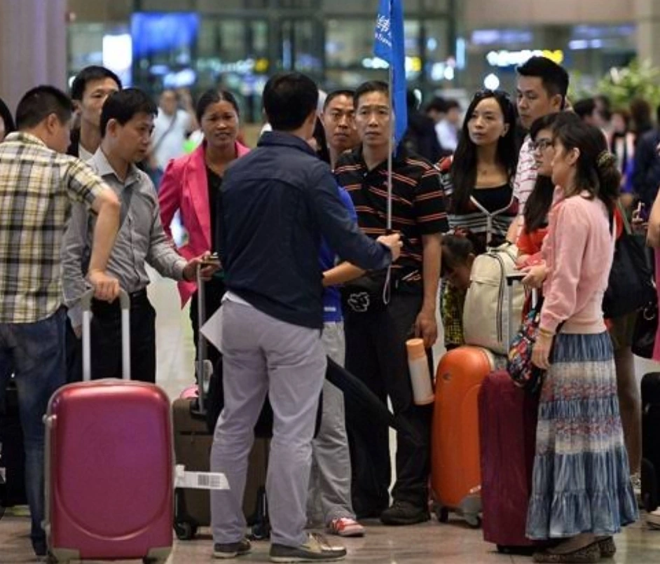 시드니행 단체 중국인 관광객 무리가 자리를 잡고 있었다.