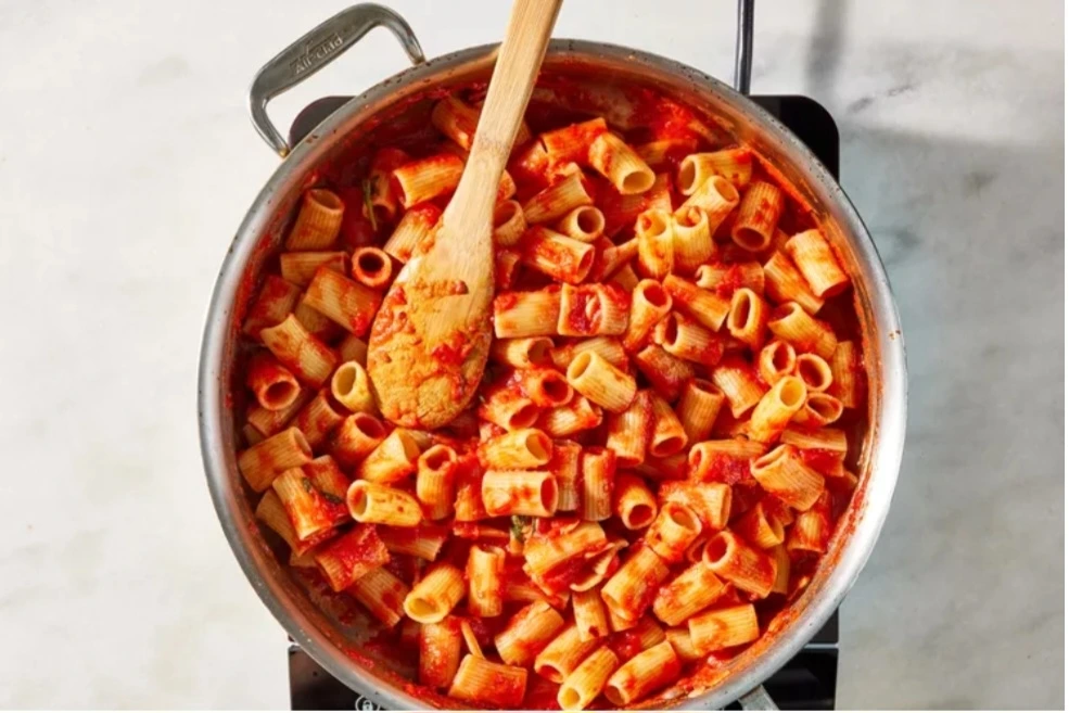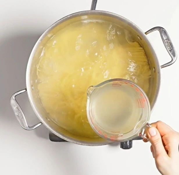 소금을 넉넉히 넣은 물(약 2큰술)을 끓이고 리가토니 320g을 넣어 약 8~9분간 알덴테로 익힙니다. (면수는 한 컵정도 따로 덜어둡니다.)