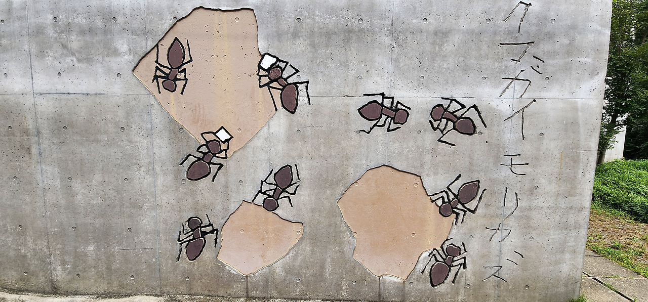 작가의 이름이 쓰여져있는 콘트리트 건물을 보고는 대체 이 안에 무엇이 들어있을지 전혀 상상이 안갔습니다. 지인의 말로는 일본 내에서는 상당히 유명한 작가라면서 미술관을 어떻게 찾았냐고 놀라워하더군요. 오픈 시간 전에 방문하여 잠시 밖에서 기다리다가 안내에 따라 관람을 시작했습니다.