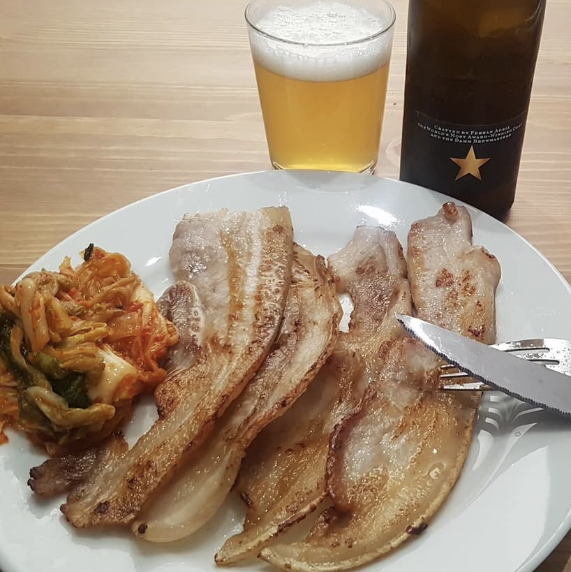그리고 기쁜 마음에 혼자 삼겹살을 굽고