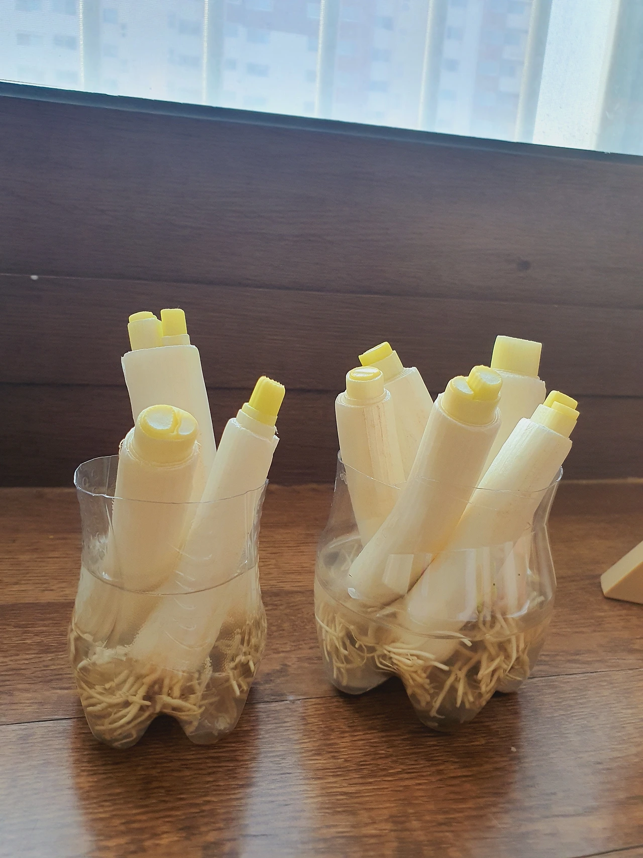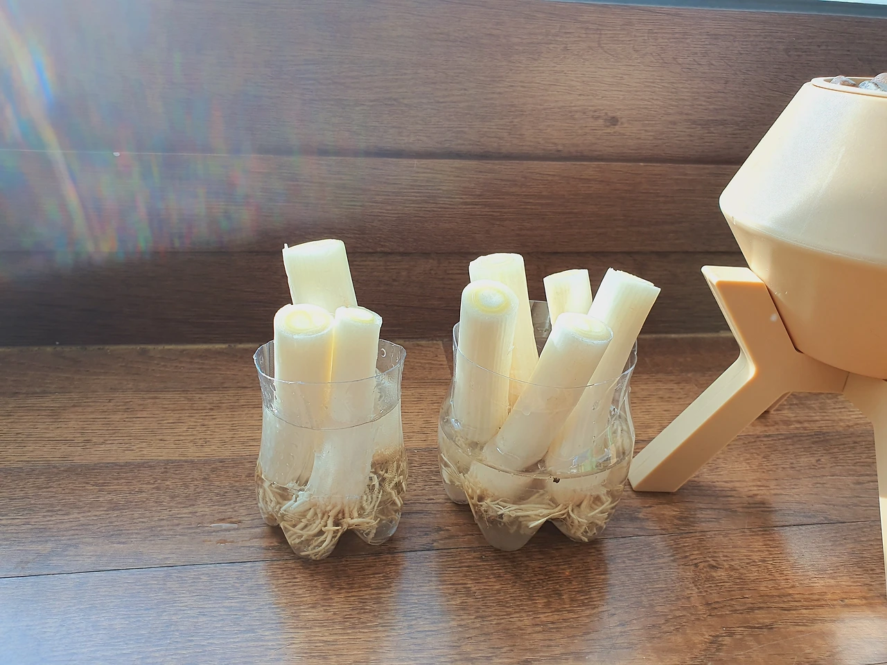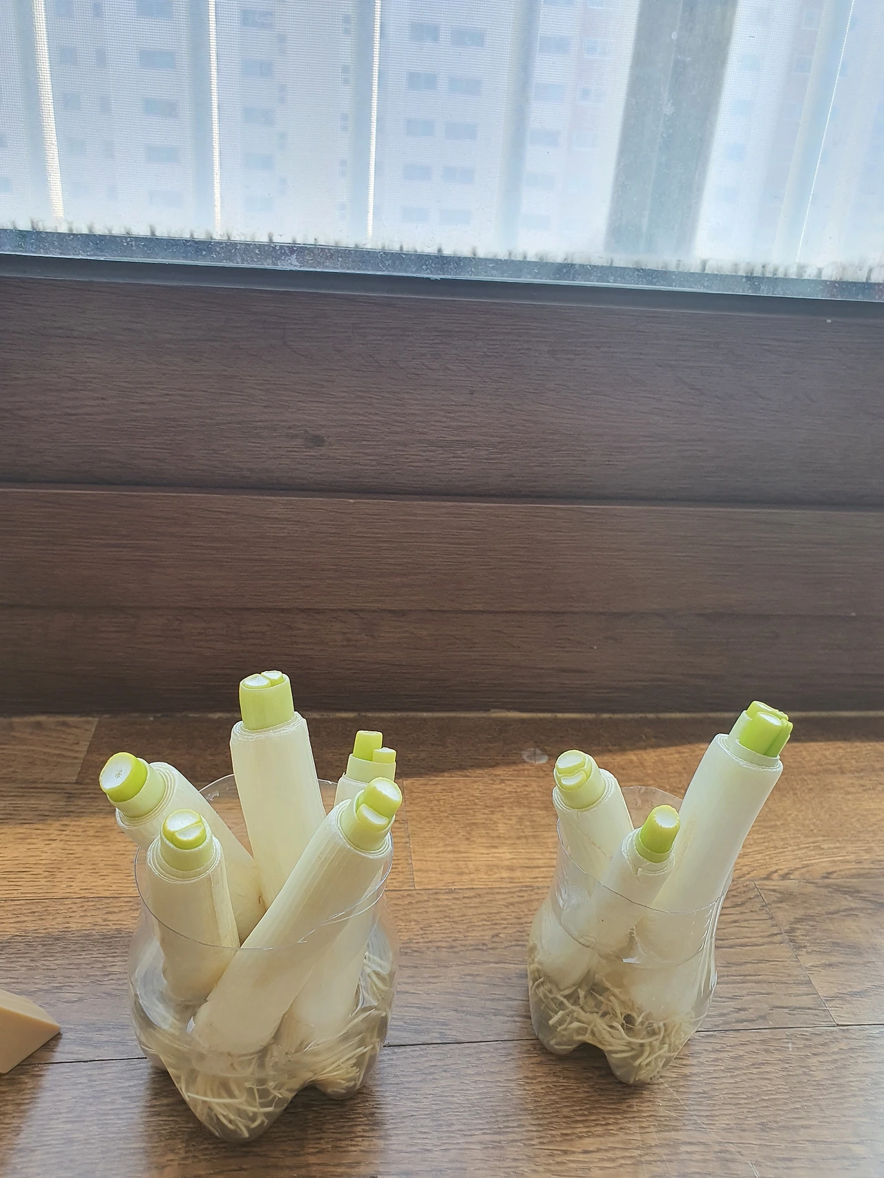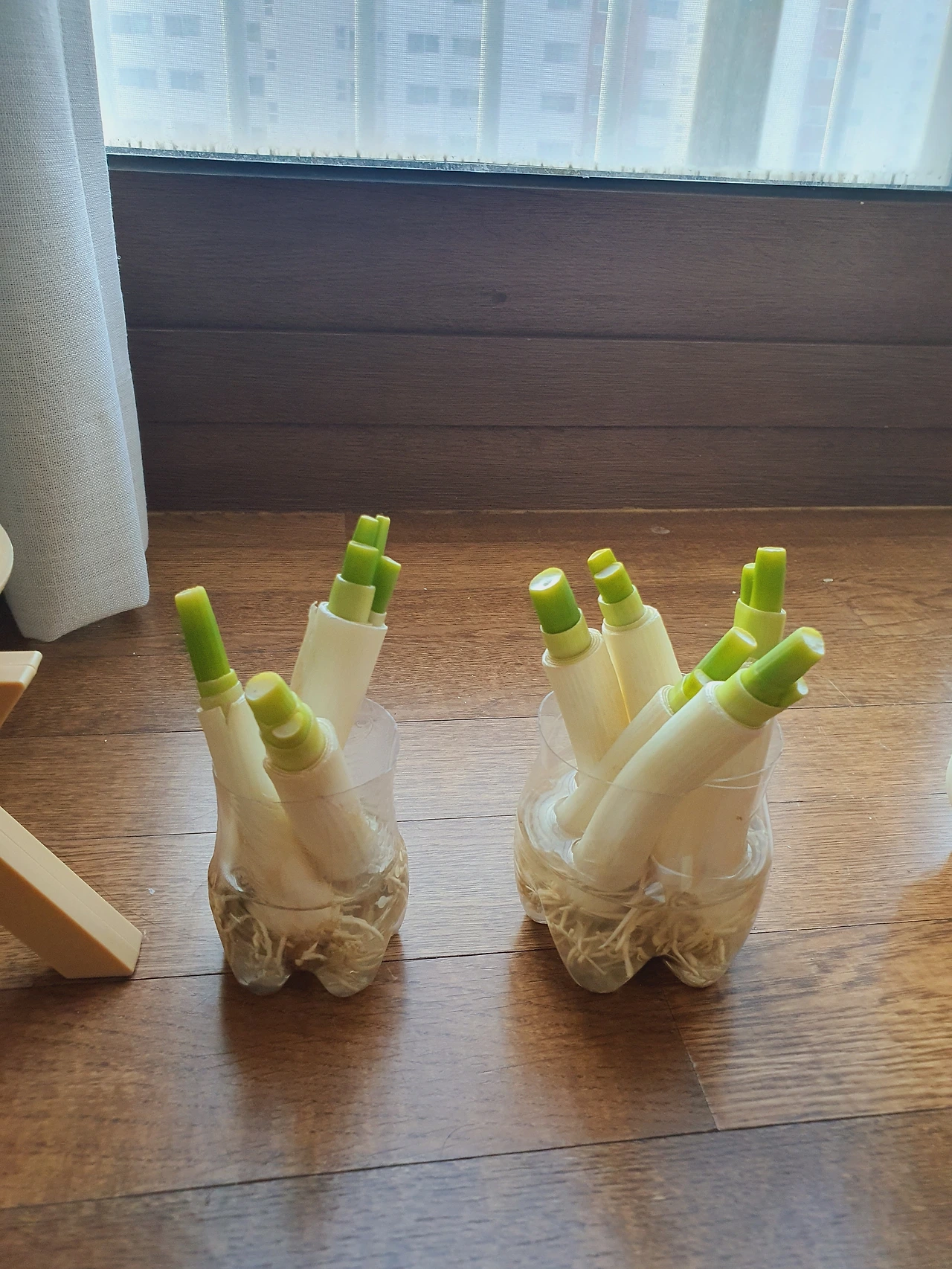 4월부터 파 값이 내린다고 하지만, 다들 파를 키워먹는다니, 이렇게 된거 우리도 키워먹자! 하는 생각이 불쑥 들었다. 페트병을 자르고 물을 담았다. 파는 송송 썰다가 뿌리가 있는 부분만 남겼다. 깨끗하게 흙을 씻겨내고 물에 담갔다. 그리고 하루, 이틀, 시간을 보냈다.