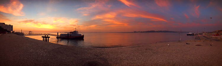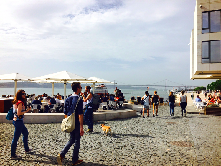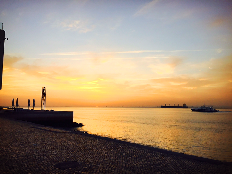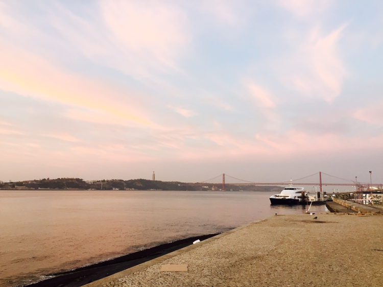 리스본에서 묵은 sunset destination hostel의 더블룸은 오래되어 쿰쿰했다. 가구나 방의 컨셉은 빈티지를 지향하는 듯했지만 그냥 낡은 것들이었다. 언제 빨았을지 모르는 천이 덧대어진 암체어에 아무것도 올려놓고 싶지 않을 정도였다. 우리는 그저 둘이서 온 해외여행이라는 사실에 들뜬 나머지 마음이 한없이 너그러워져 방의 상태를 딱히 문제 삼지 않았을 뿐이다. 딱 하나 좋은 것은 바로 루프탑 가든이었다. 저녁 시간을 훌쩍 넘겨 짐을 풀고 다음날 맞이한 둘째날 아침, 테주강 너머 멀리서 해가 떠오를때 쯤 하늘은 주황빛으로 빛나고 있었다. 갈매기 울음소리를 반찬처럼 곁들여 아침을 먹고 테주 강가로 산책을 나섰다. 구름에 주황빛이 옅게 남아있었는데 걷는 동안 해가 완전히 떠 눈이 부셨다. 테주강은 처음보는 사람 열이면 열 모두 강 대신 바다라고 할 곳이다. 바다에 맞닿아 있어 옅은 파도가 철썩였고 강 폭은 바다처럼 넓었다. 강변을 따라 넓은 산책로가 길게 이어지고 카이스 두 소드레에서 강가를 따라 동쪽으로 20분 정도 걸으면 코메르시우 광장에도 이를 수 있다. (코메르시우 광장 앞 강가에는 무려 모래사장까지 펼쳐져있다.)