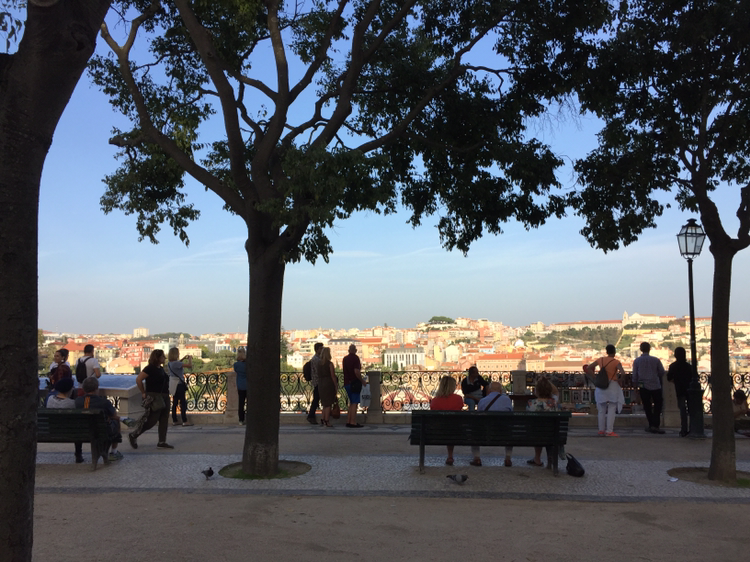 리스본에서는 어느 곳을 가도 전망대를 만난다. 산책하다가 우리만 아는 좋은 곳을 찾았다고 했는데 알고 보니 유명한 곳이었던 상 페드로 알칸타라 전망대.