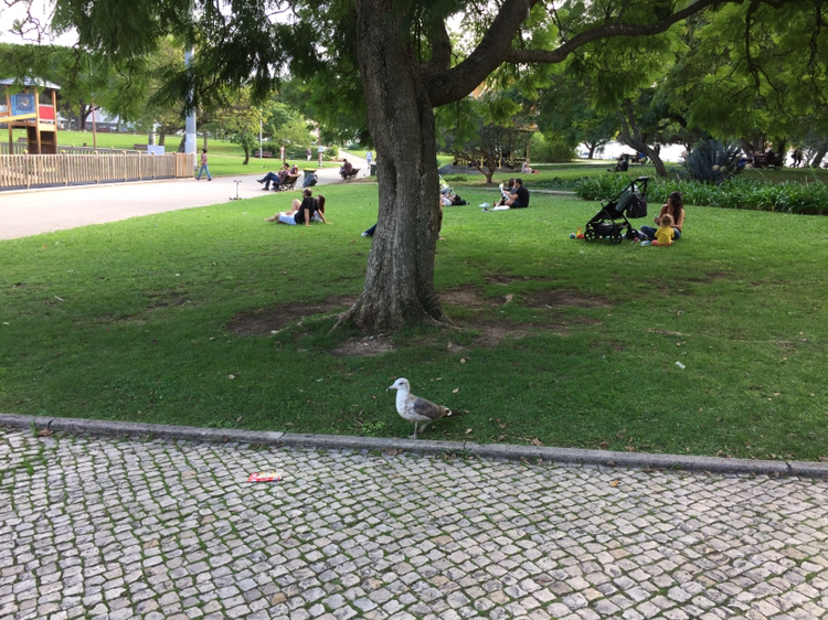 나타를 먹고 걸어서 벨렝 탑으로 향하는 길에 만난 공원. 갈매기들이 서울의 비둘기처럼 거리를 활보한다.