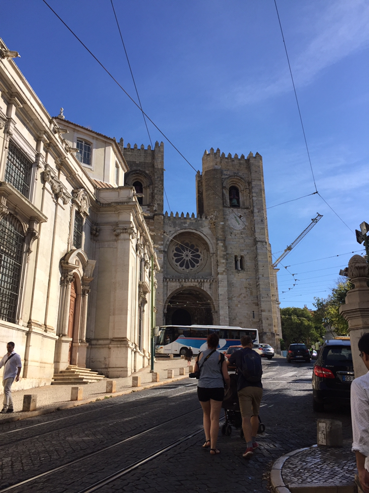 리스본 대성당에 미사를 드리러 가던 일요일 아침. 트램이 지나가는 모습을 포착하지 못해 아쉽다. 노란 트램이 대성당 앞을 지나가는 광경은 리스본 관광 엽서의 단골 사진이다.