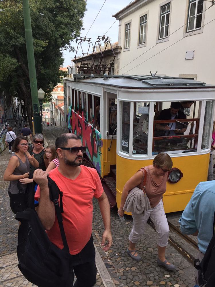 리스본의 명물, 트램. 28번 트램이 가장 유명한데, 일반 정류장에는 기다리는 사람이 너무 많아 종점인 마르팅 모니즈로 갔지만 이미 한시간은 기다려야 할만큼 줄이 길었다.