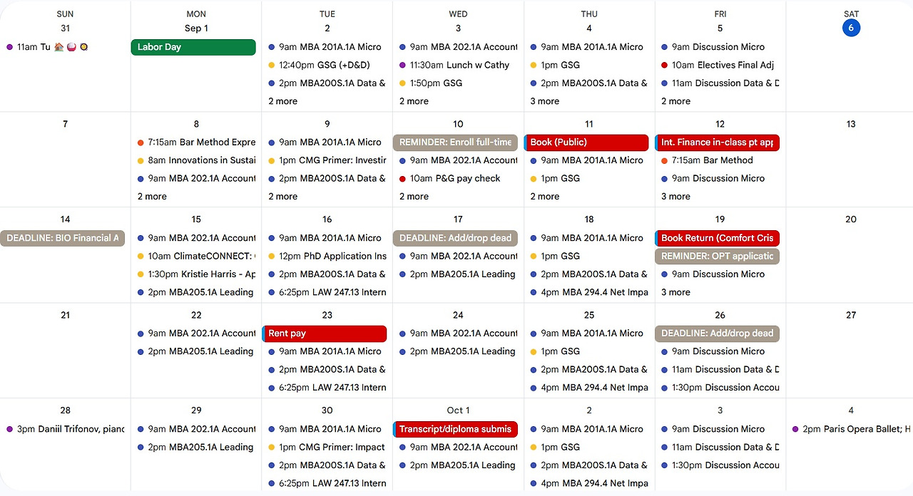 학기 시작 후 수업과 커리어 활동들에 참여하다 보니 어느새 내 캘린더의 빈틈이 모두 사라졌다. 평일에 시간이 도저히 안나 일요일에도 수업준비와 인턴십 관련 리서치를 하며 나를 몰아치기 시작했는데, 어느 순간 뇌가 또 과열되는 것을 느꼈다. 순간 아차 싶었다. 이러다가는 또다시 중심을 잃고 급류에 휩쓸리기 십상이었기 때문이다.