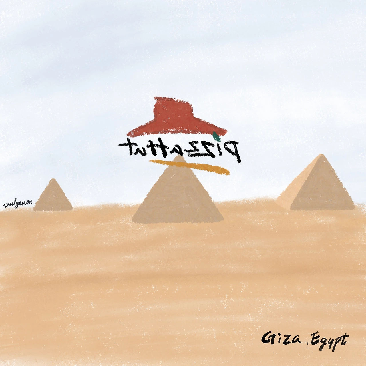 카이로에서 멀지 않은 곳 기자에 위치한 피라미드를 보러 나섰는데, 타고 가던 버스가 접촉사고를 당해서 시비가 붙었고 더 달릴 생각이 없어 보여 중간에 내려 한참을 걸어야 했다. 피라미드에 도착하니 이미 체력 고갈. 더위와 불쾌함에 지쳐서 피라미드 내부를 둘러볼 의지가 꺾여버렸다. 멘탈을 챙기기 위해 뭐라도 먹으면서 피라미드를 바라보는 편이 낫겠다 결정하고 기자 피라미드 근처 피자헛에 들어갔다. (카이로에서는 현지 음식에 도전하기보다 안전한 패스트푸드를 더 자주 먹었었다.)