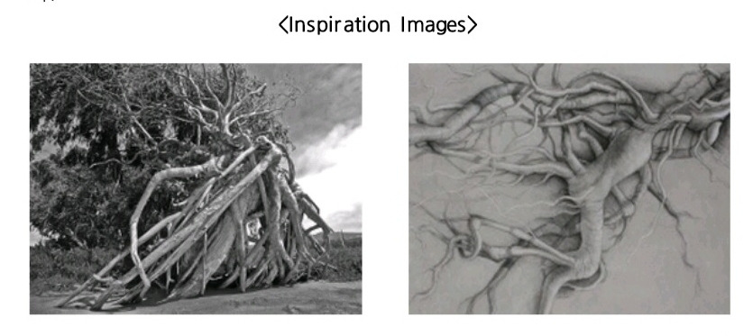 대학교 4학년이었던 2014년 내 졸업패션쇼 작품의 주제는 '뿌리'였다. 별다른 이유는 없었다. 그저 뿌리 본디의 생김새와 하고 있는 일이 마음에 들어서였다. 부끄럽지만 당시에 인문학적 소양이랄 게 거의 없었기에 근원부터 탐색할 생각은 할 수 없었다. 못했다고 하는 게 더 정확할지도 모르겠다. 전공 수업의 8할이 옷을 만드는 일이었는데 언제나 중요한 건 디자인한 것을 실제로 만들 수 있느냐 없느냐였다. 기술과 구현이 1순위였다. 상상력은 자연스럽게 스무 살 초반의 기술에 제약을 받았다. '왜'의 맥락을 따지고 파고들고, 함께 나누고 굴리는 시간은 거의 전무했다.