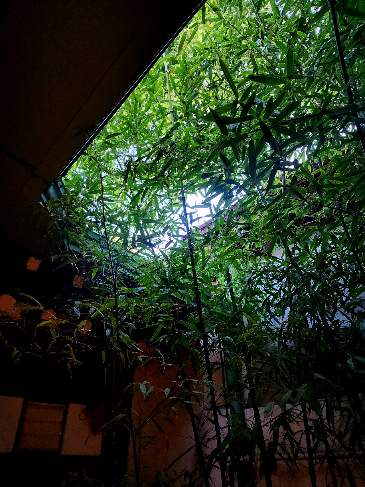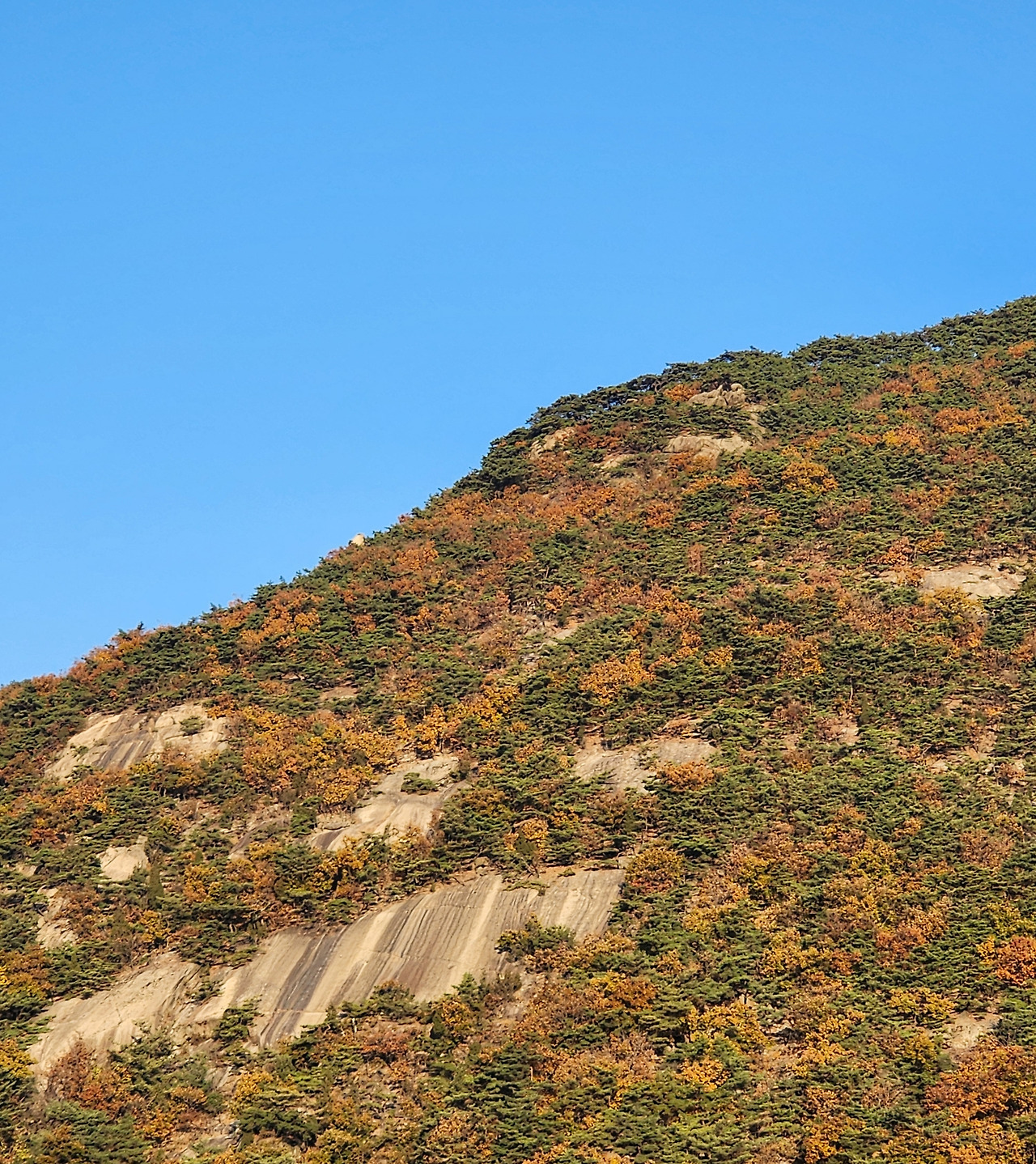 대나무 이파리가 속살거리던 우주 밖을 나온다. 마음은 다려지고 어깨는 펴져있다. 인왕산등성이를 지긋이 바라본다.
