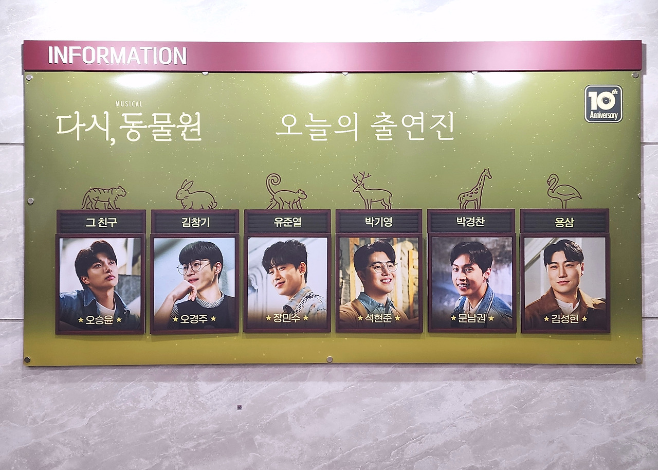 6월 29일에 첫 공연을 본 후 매주 일요일마다 보러 갔던 뮤지컬 《다시, 동물원》. 여름휴가와 공휴일 덕에 갈 수 있던 회차까지 합하면 지금까지 열 번 넘게 관람했다.