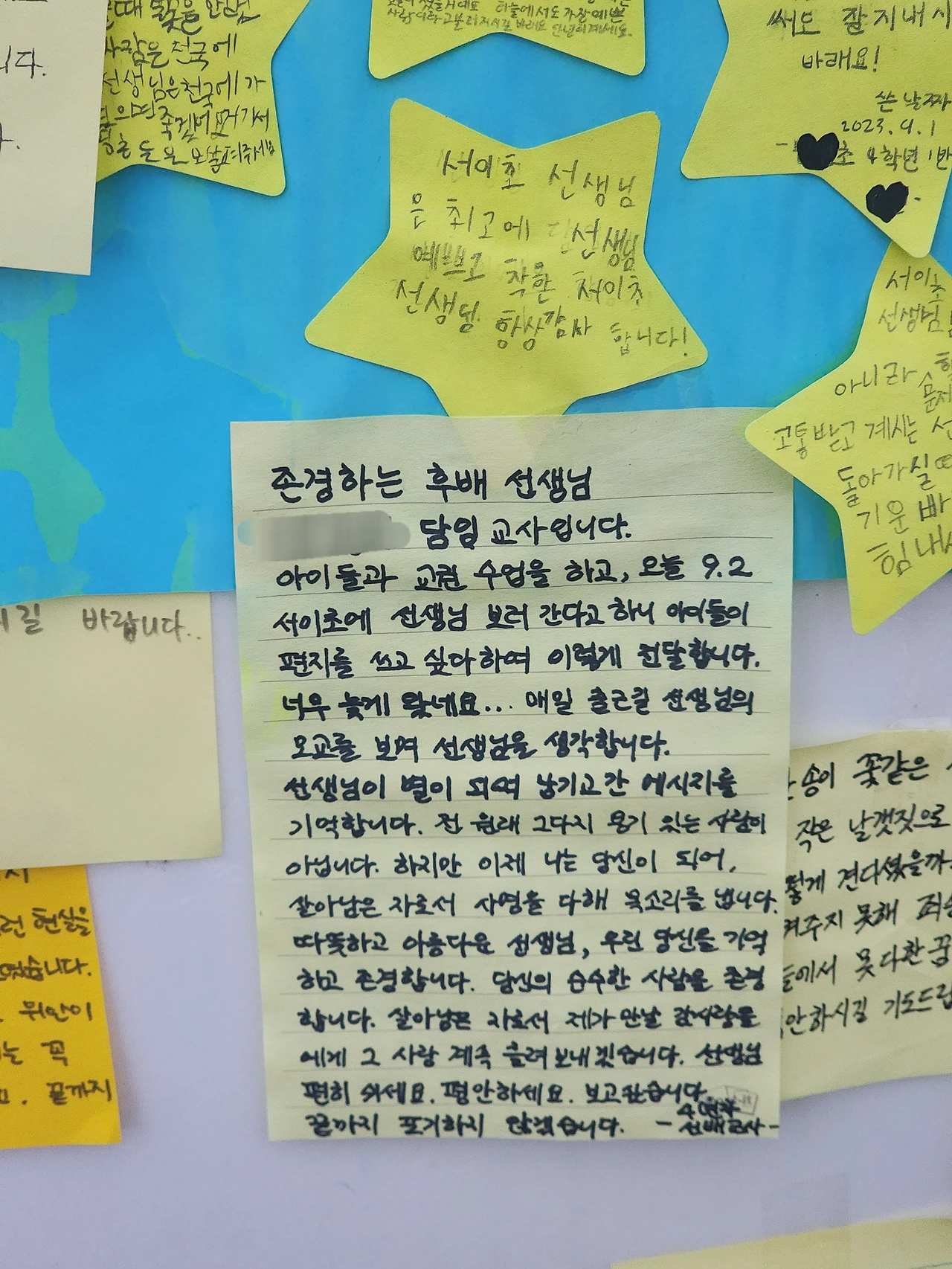 제자들의 편지도 함께 붙이신 한 선생님의 편지