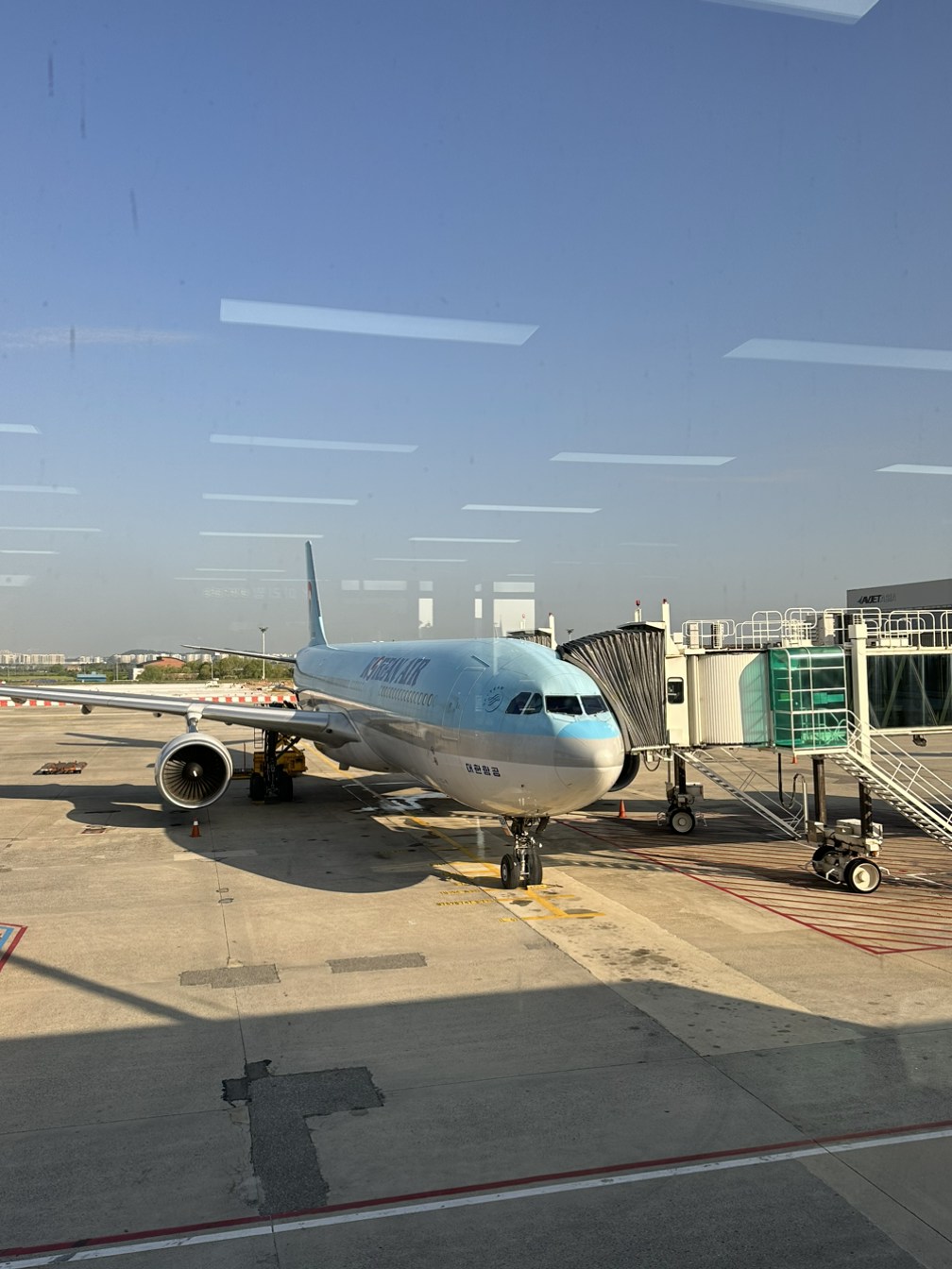 첫째 날과 마지막날 비행기. 이번 여행에서 유일하게 바다를 볼 수 있는 시간이었다. 아빠 말에 따르면 간사이 공항은 간척지 위에 지어진 공항이라고 한다. 간척지 위의 활주로에 착륙하면서 저 멀리 보이는 바닷물을 볼 수 있었다. 난 개인적으로 '바다'를 본 순간부터 진짜 여행이 시작되었다는 인상을 받기 때문에, 조그마한 비행기 창문 너머 손수건만 하게 보이는 바다라도 나를 흥분시키기에는 충분했다.