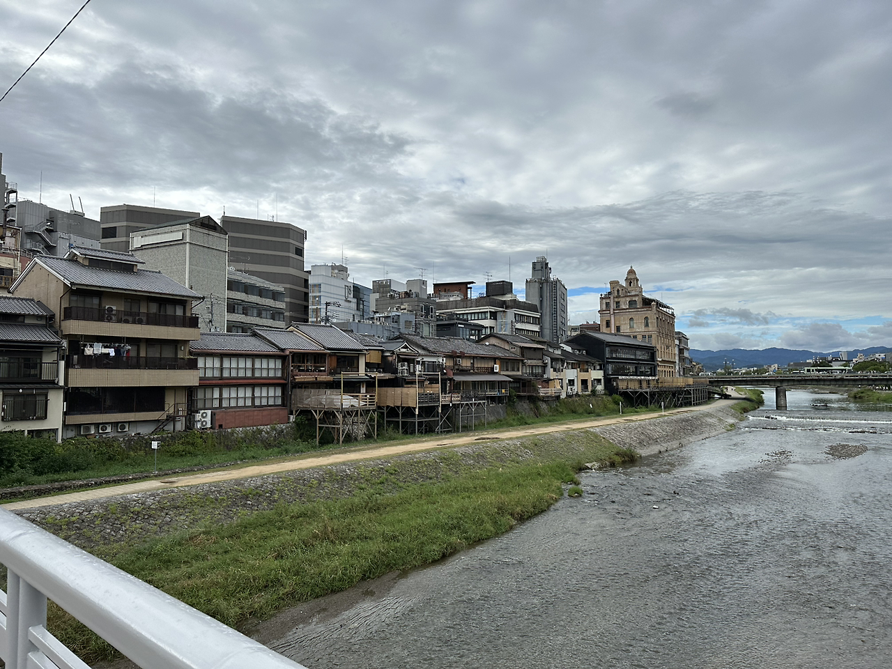 날씨는 더웠지만 모든 것이 완벽했다. 이국적인 풍경과 카모강 건너의 아름다운 목조건물들은 우리의 발걸음을 자꾸만 멈춰 세우고 카메라 버튼을 누르게 만들었다. 그런데 이게 웬걸. 카페 문은 굳게 잠겨 있었다. 카모강을 바라보고 여러 가게들이 줄지어 있었고, 가게로 들어가려면 건물 뒤편의 좁은 골목길로 들어가야 했다. 골목에는 저녁 장사를 위해 식재료와 술병들을 옮기는 아저씨로 어수선했다. 나는 구글맵에서 현 위치와 건물 하나하나를 비교하며 카페 치라쿠를 찾았는데, 문이 잠겨있는 것이다. 구글맵에는 아직 영업 중이라고 나오는데...