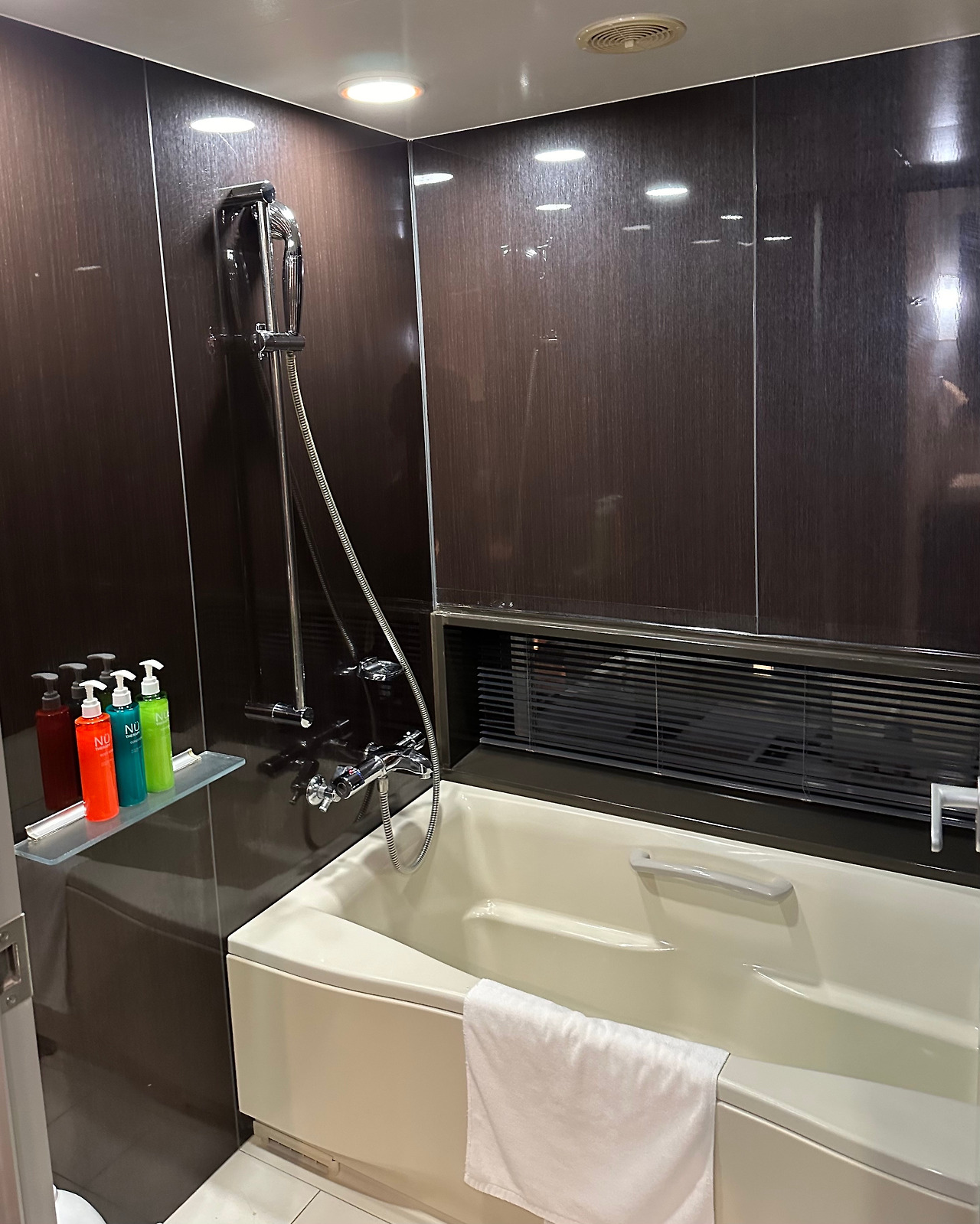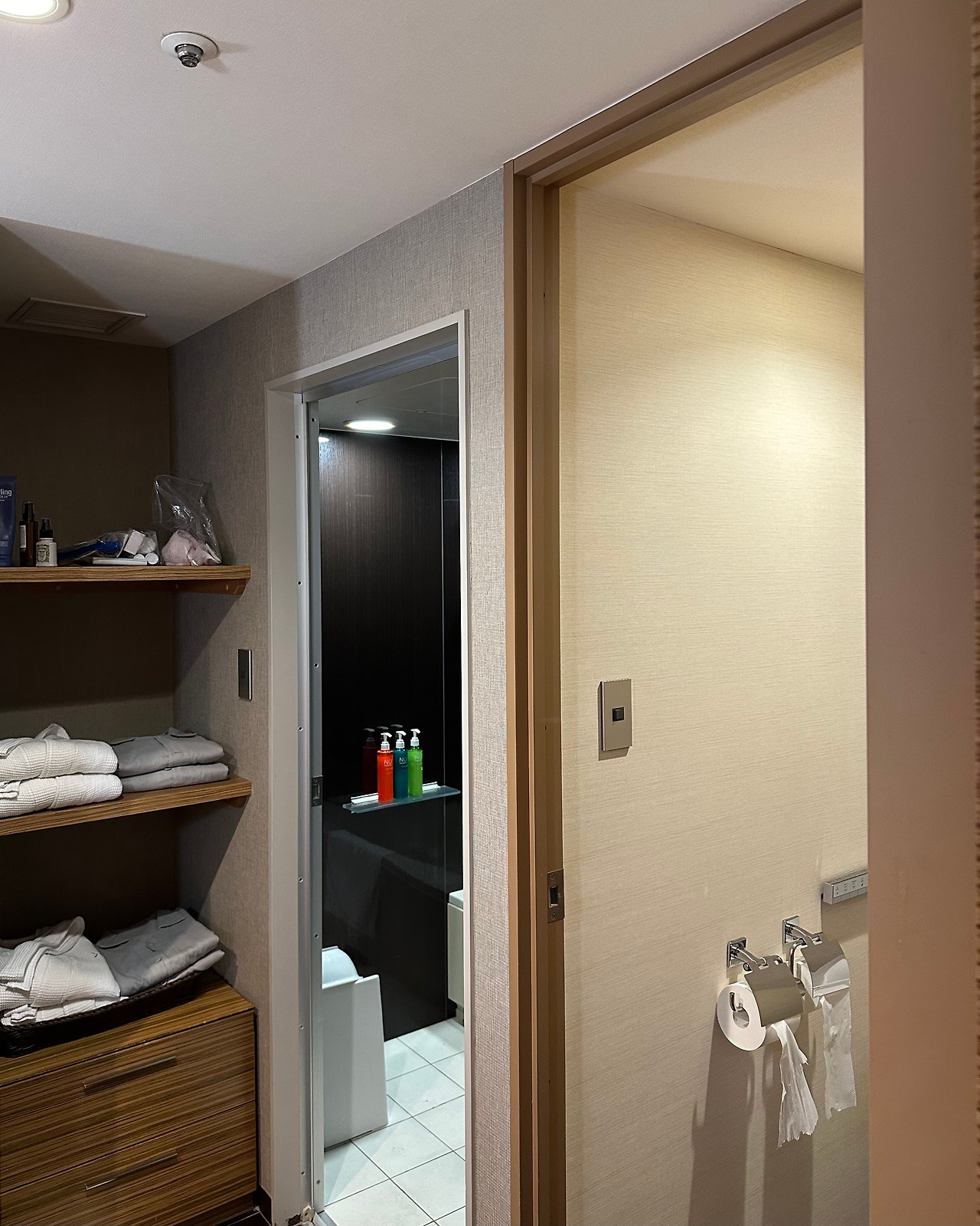 화장실 공간은 서로 구분되어 있었으며 목욕 가운과 실내복(대욕장 갈 때 혹은 잠옷으로 활용)을 인원수대로 제공해 준다. 18층에 위치한 대욕장에는 수건이 없어 객실 수건을 꼭 챙겨 가야 한다.