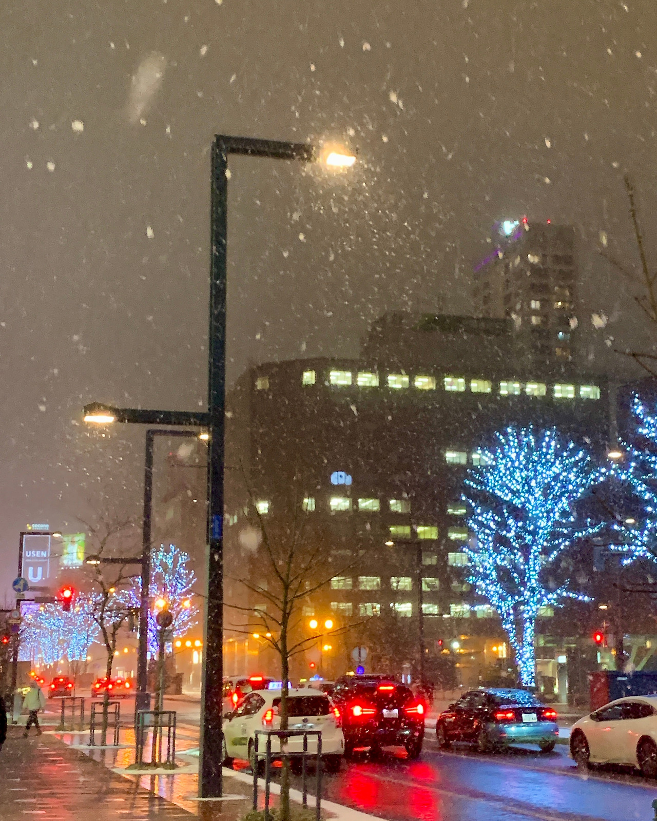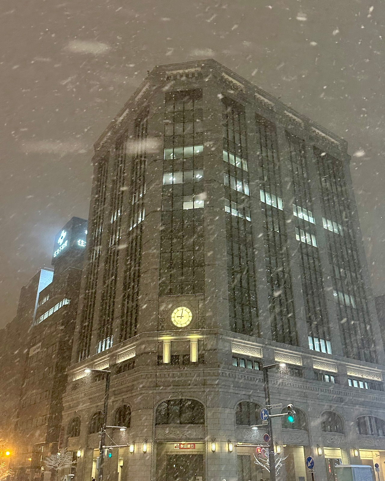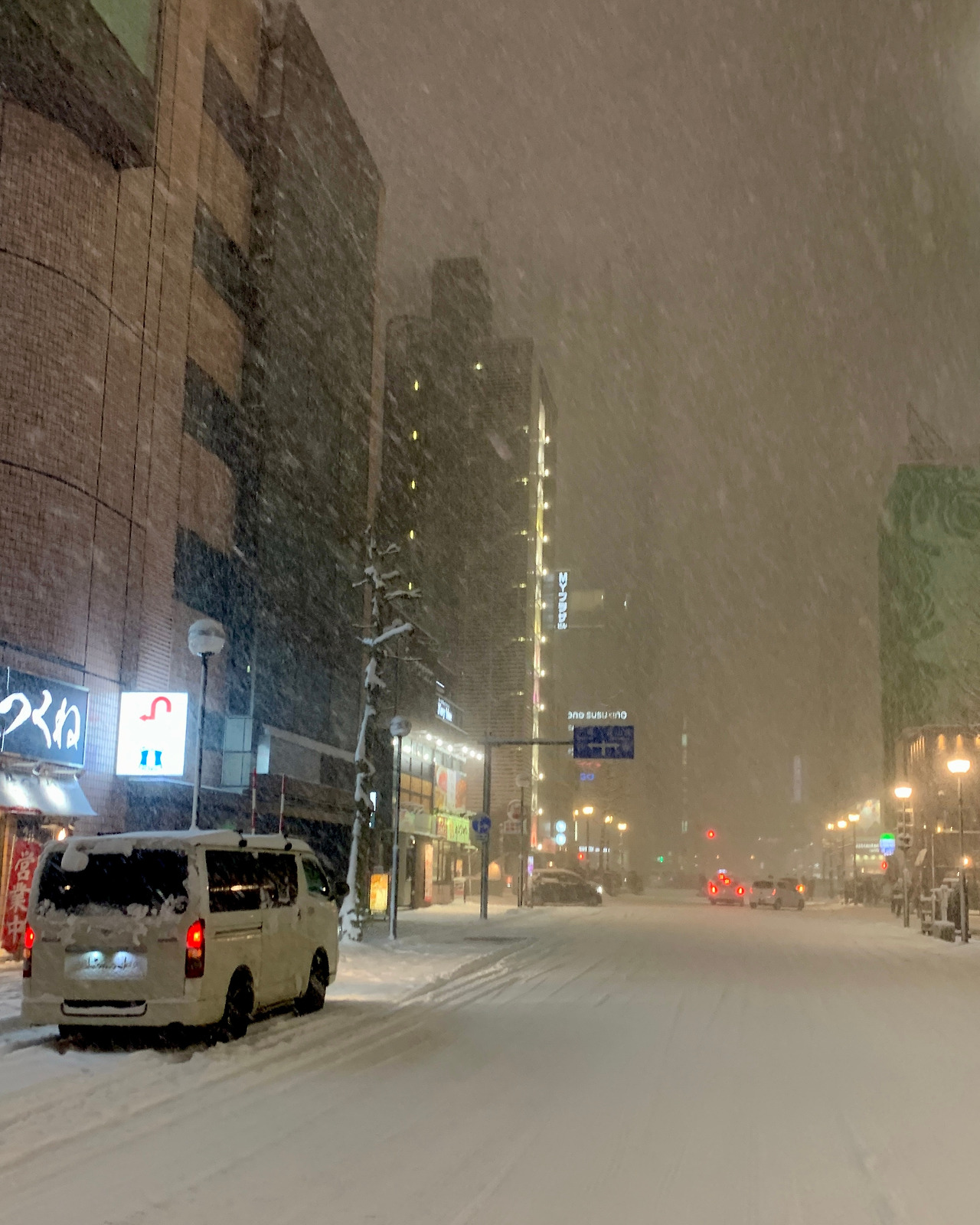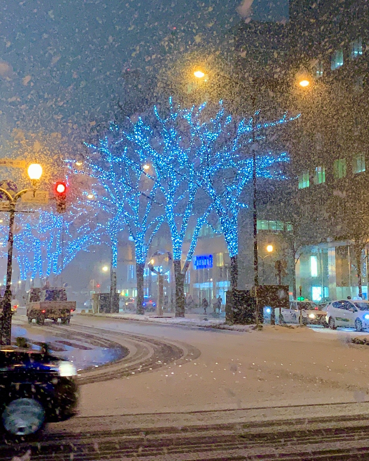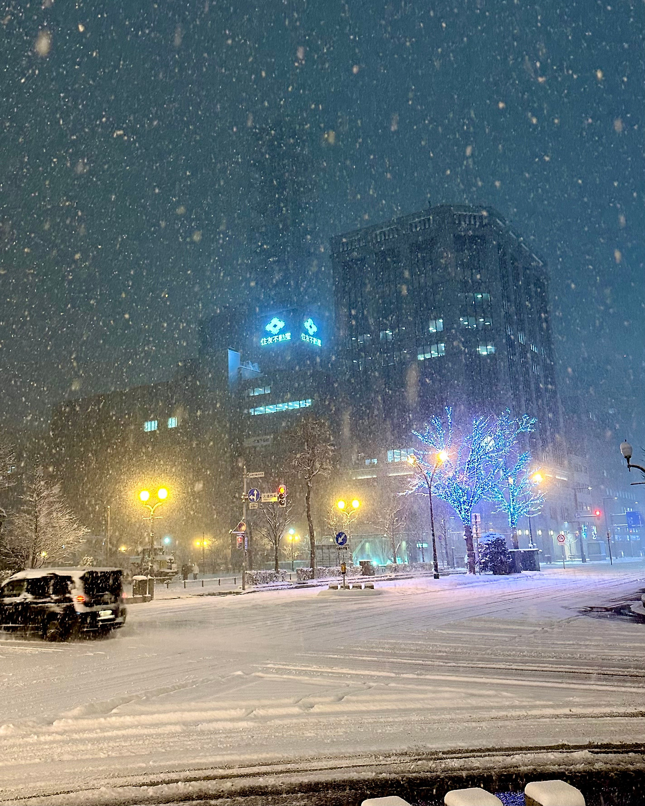 삿포로 밤거리를 구경하며 예약한 식당으로 걸어가기 위해 조금 서둘러서 호텔을 나섰는데, 하늘에서 새하얗게 함박눈이 내리고 있었다. 그것도 펑펑. 눈꽃은 순식간에 쌓이기 시작했다. 우리 가족은 눈이 내리는 것을 보고 누가 먼저랄 것도 없이 고개를 위로 들고 눈을 맞았다. 눈앞을 가리는 함박눈과 이에 대비되는 포근한 날씨는 우리가 정말 홋카이도에 왔구나를 실감하게 만들었다.