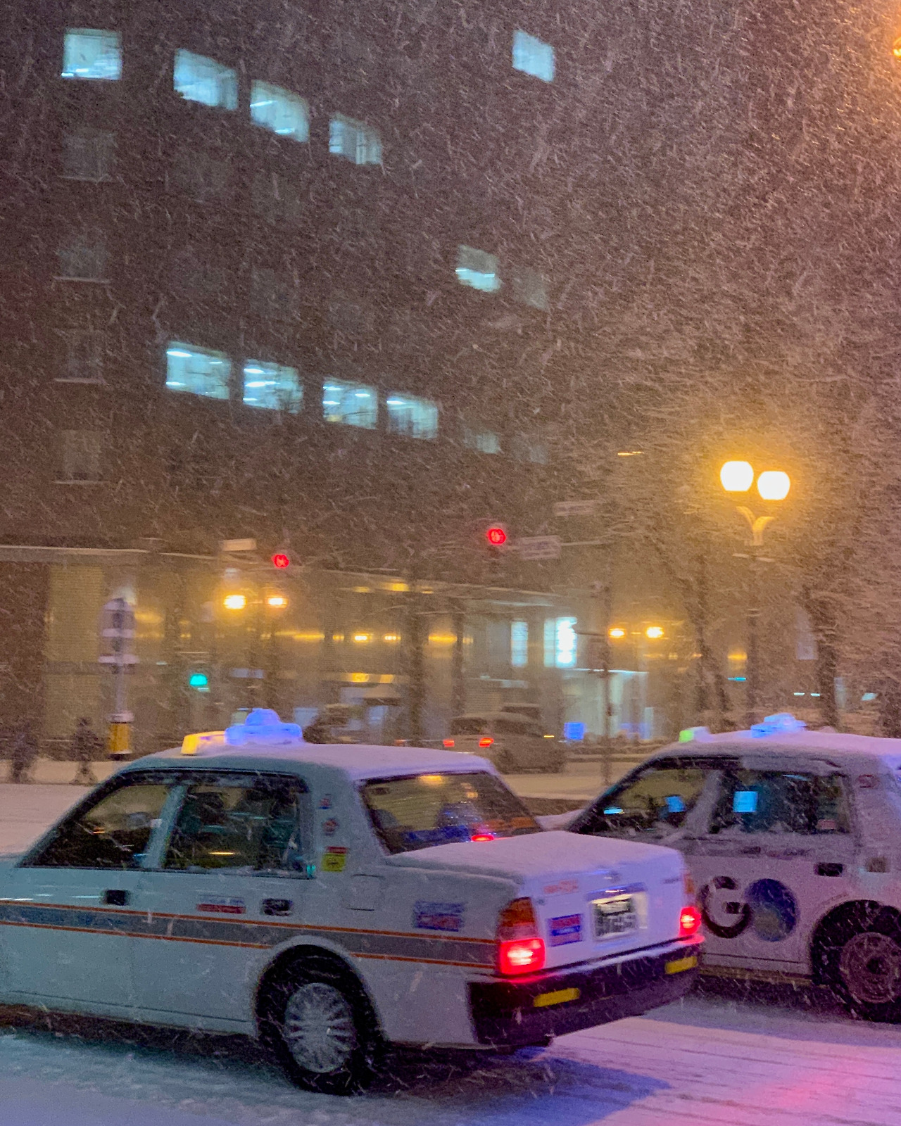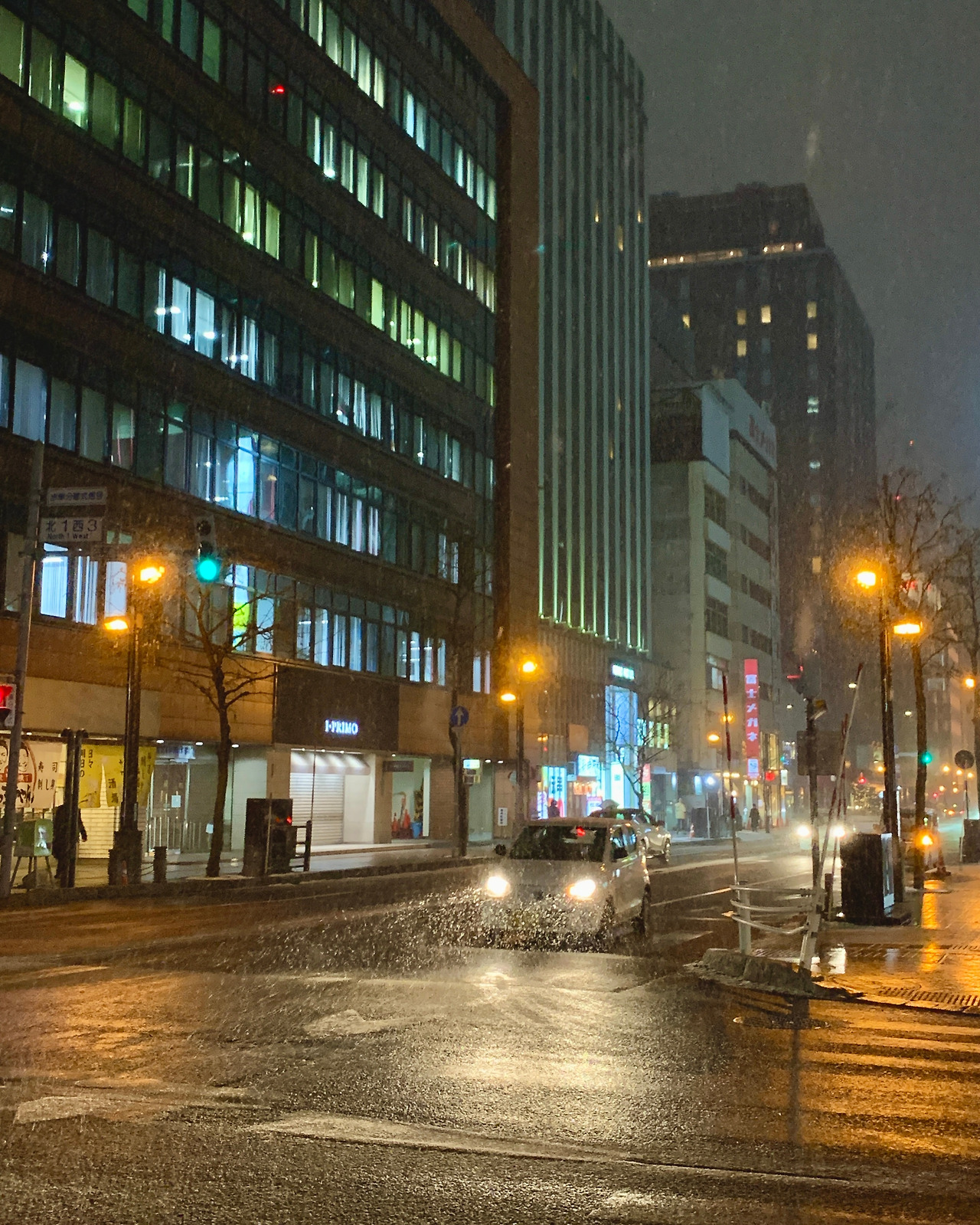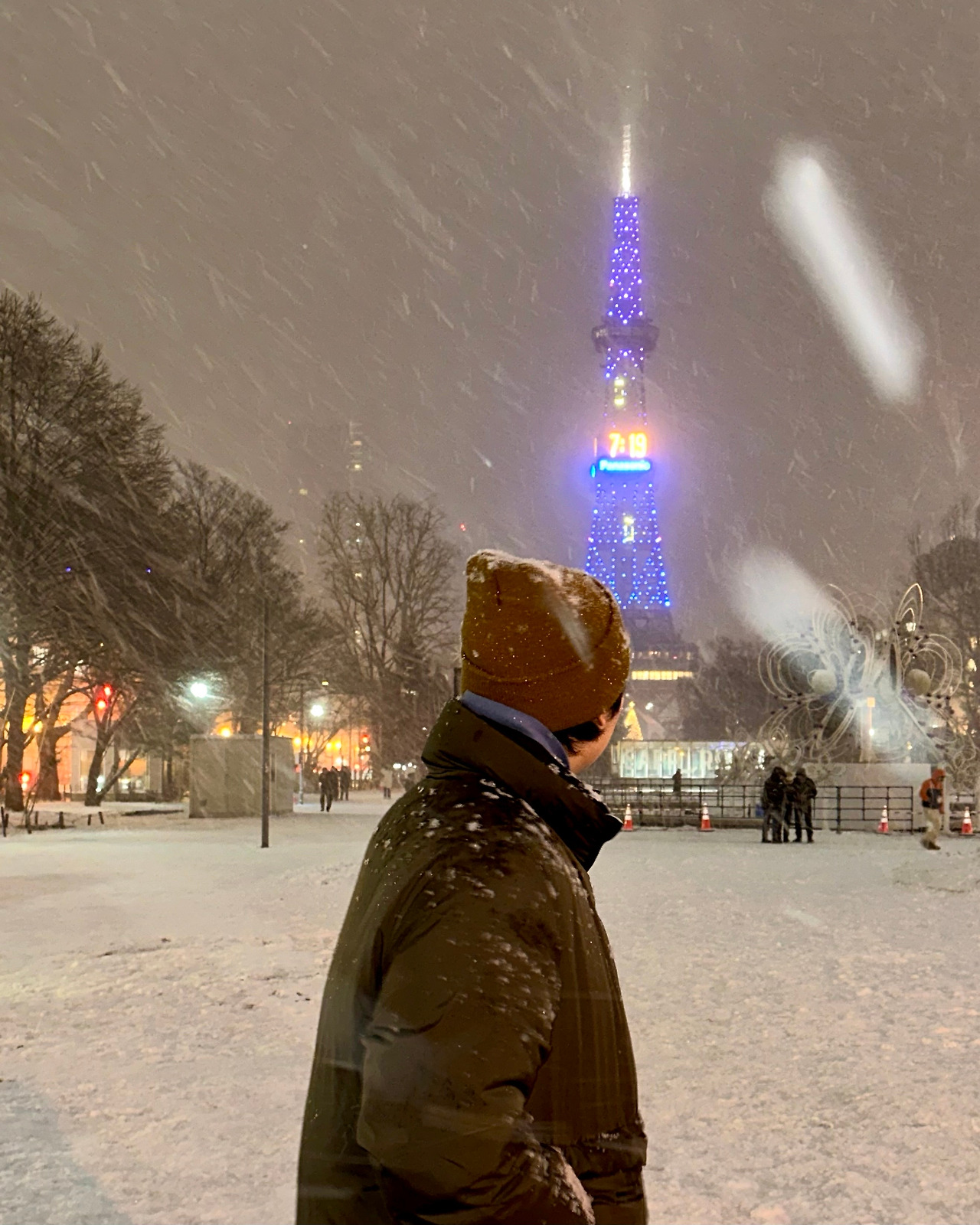 식당을 찾아가며 삿포로 시계탑, 오도리공원, 삿포로 TV타워, 트램, 니카상 전광판 등을 지났다. 그곳이 관광지든 그렇지 않든 간에 눈이 내리는 삿포로는 어디에서 카메라를 들더라도 사진을 찍을 만한 풍경이었다. 스마트폰 렌즈가 젖는 것만 주의한다면 말이다. 사진 찍는 기술이 아직 부족해서 이 날 밤의 모습을 그대로 못 담는 것이 아쉬울 따름이었다.